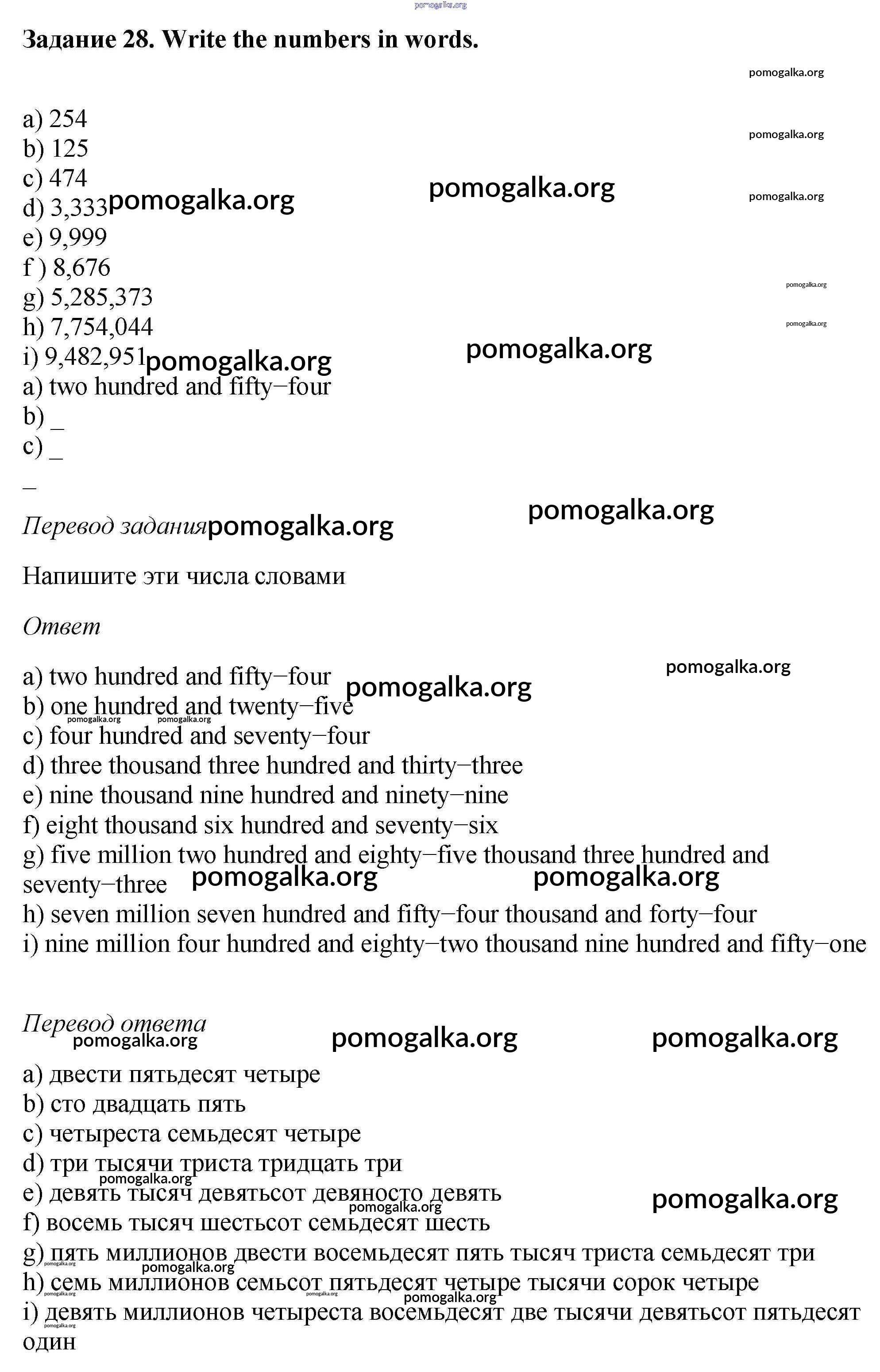 Готовые ответы - Английский язык 6 класс рабочая тетрадь Rainbow Афанасьева О.В. - unit two 28