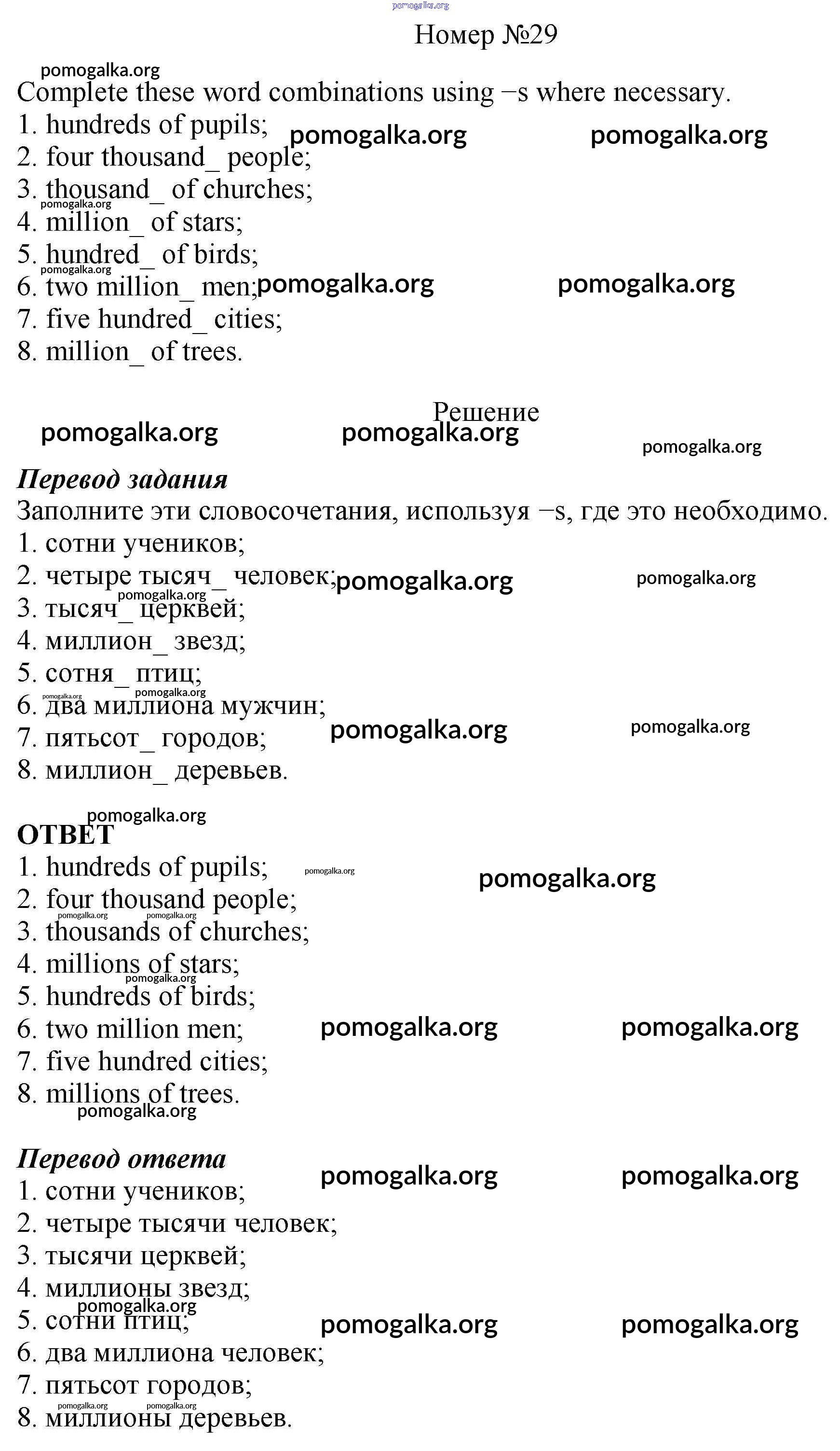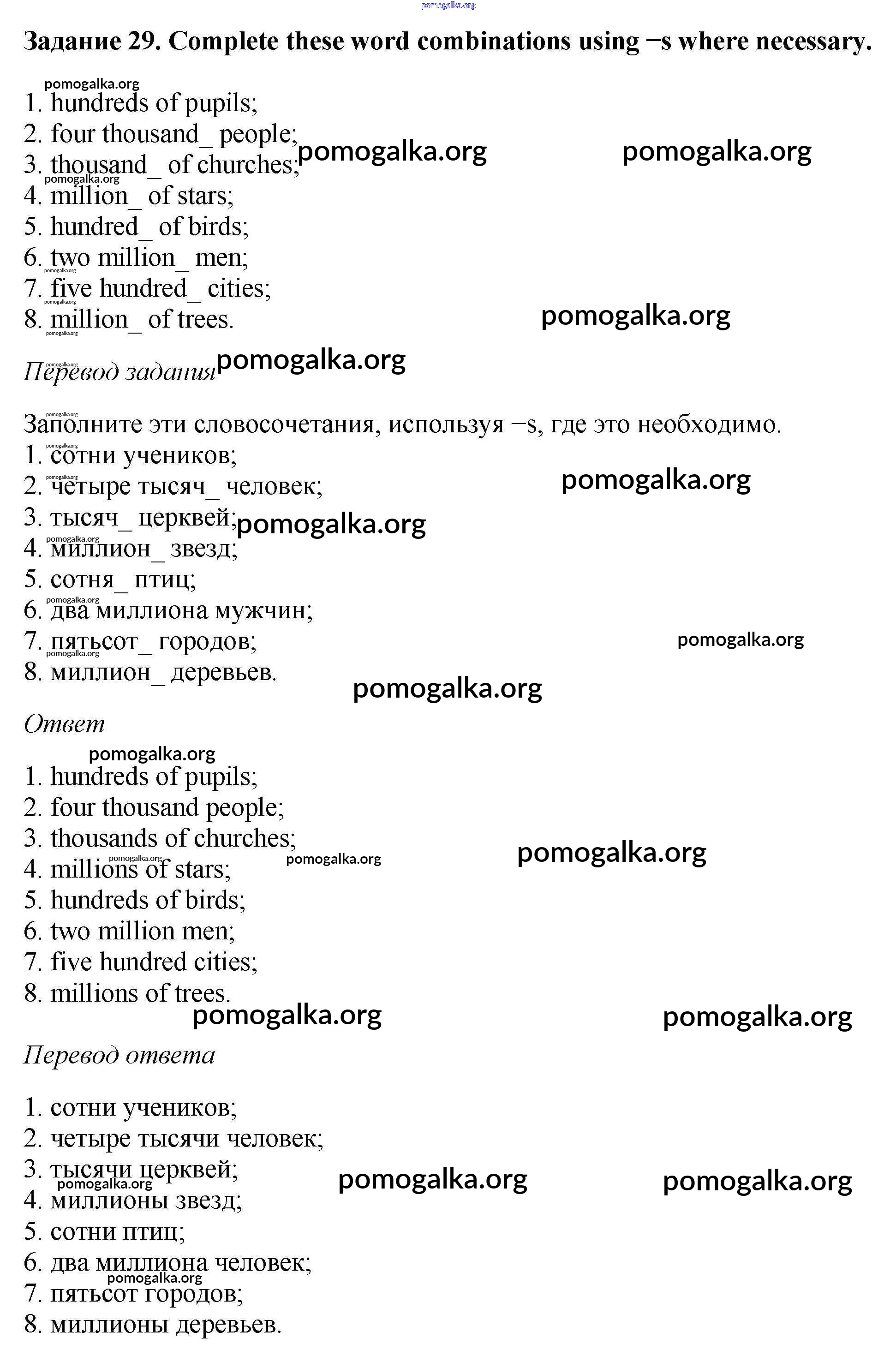 Готовые ответы - Английский язык 6 класс рабочая тетрадь Rainbow Афанасьева О.В. - unit two 29