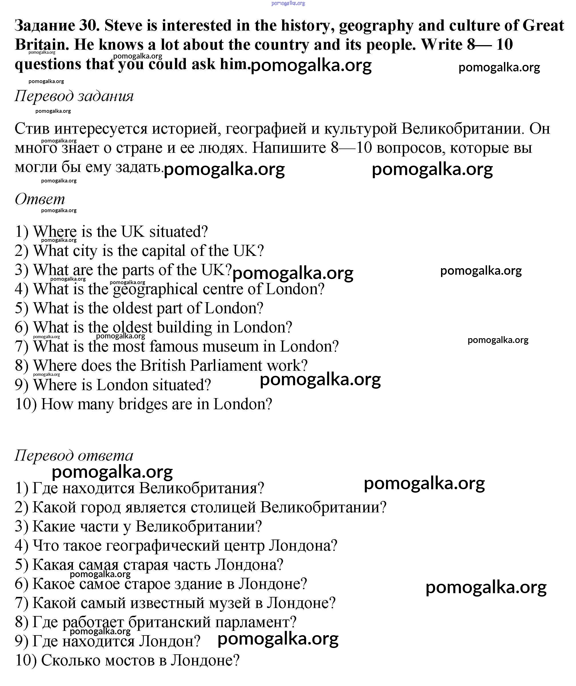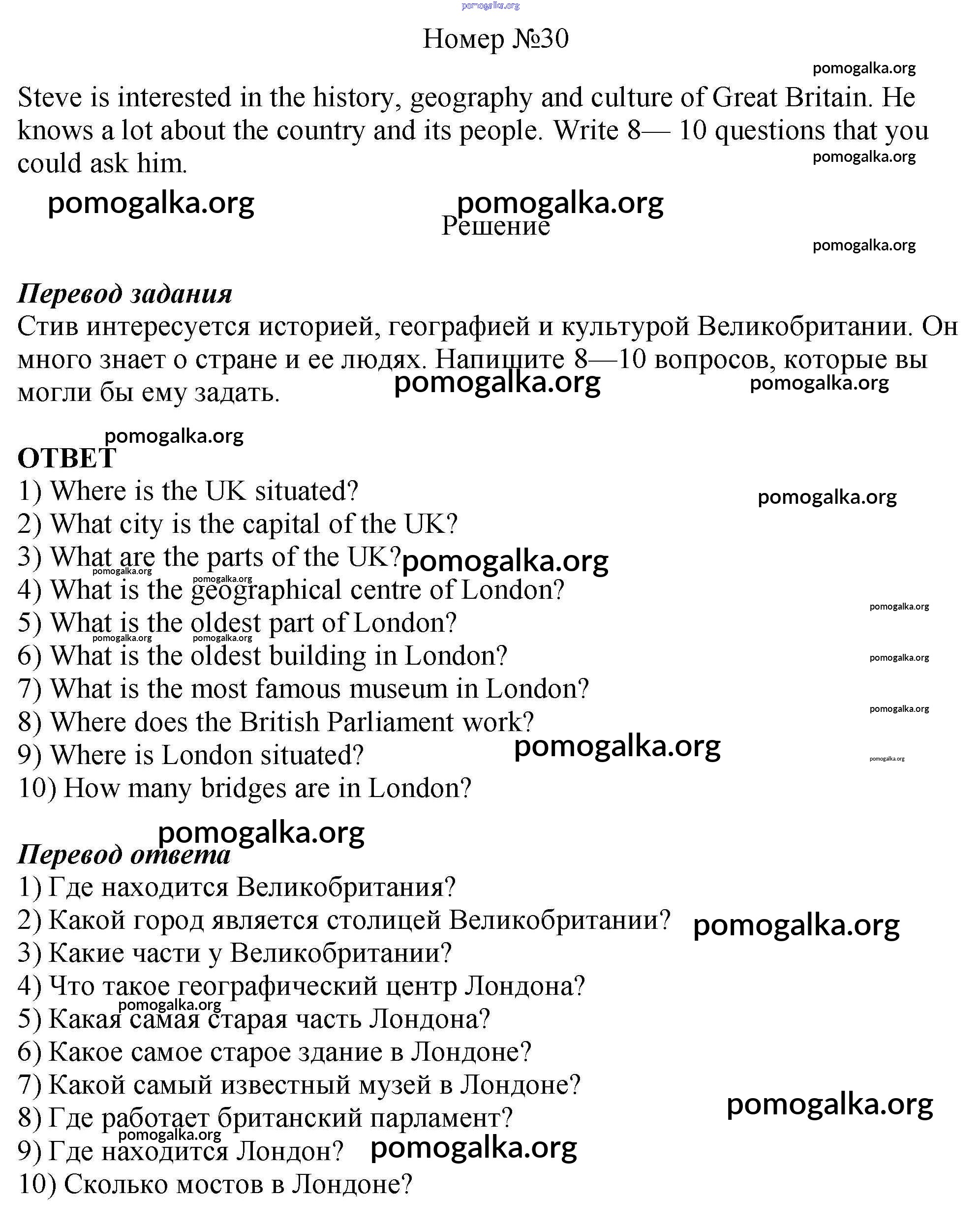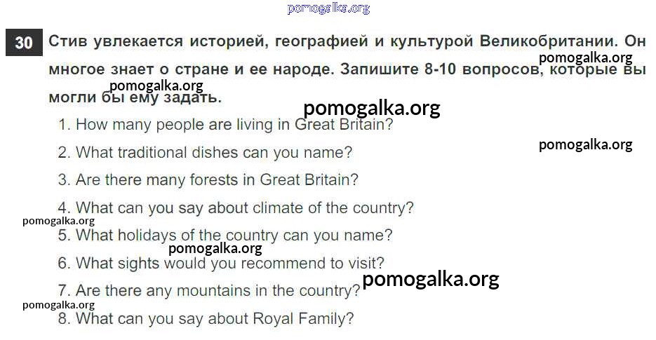 Готовые ответы - Английский язык 6 класс рабочая тетрадь Rainbow Афанасьева О.В. - unit two 30