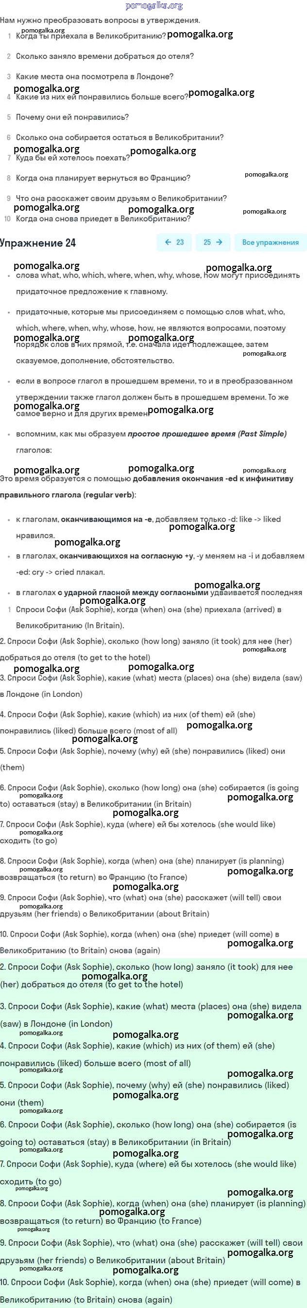 Готовые ответы - Английский язык 6 класс рабочая тетрадь Rainbow Афанасьева О.В. - unit three 24