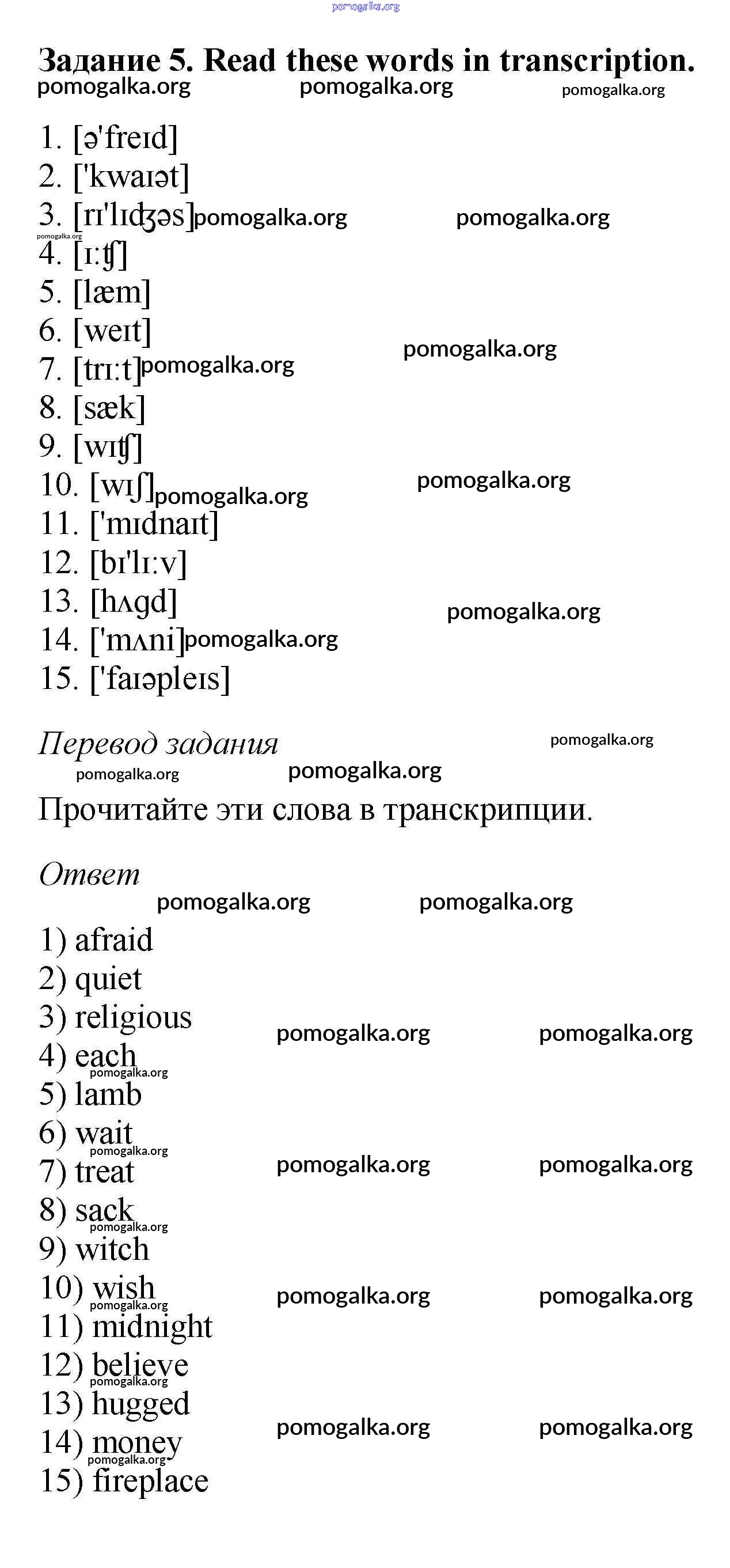 Готовые ответы - Английский язык 6 класс рабочая тетрадь Rainbow Афанасьева О.В. - unit three 5