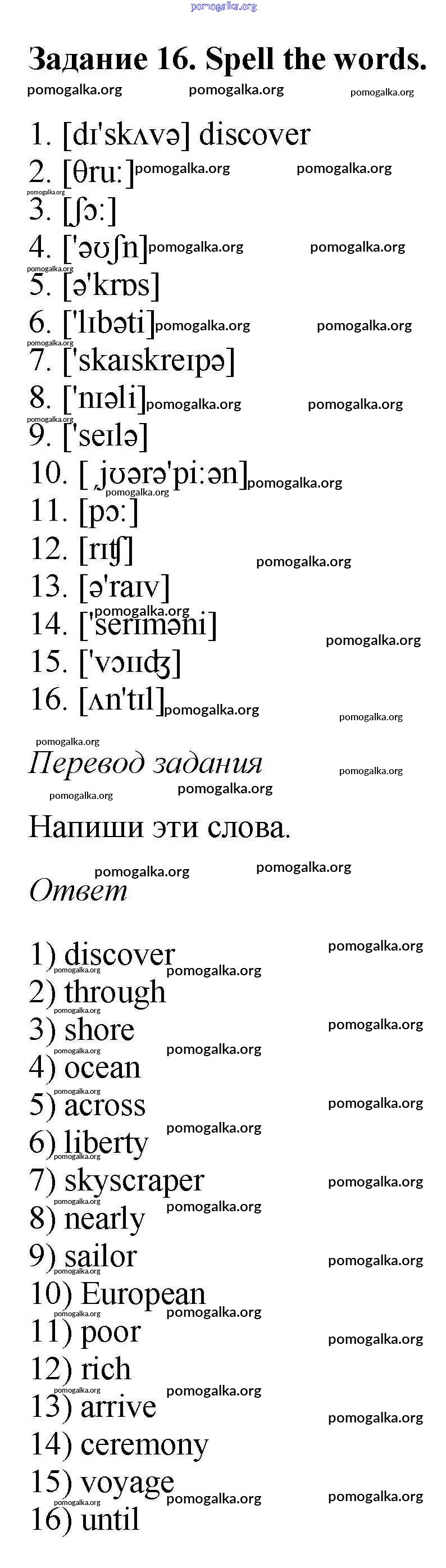 Готовые ответы - Английский язык 6 класс рабочая тетрадь Rainbow Афанасьева О.В. - unit four 16