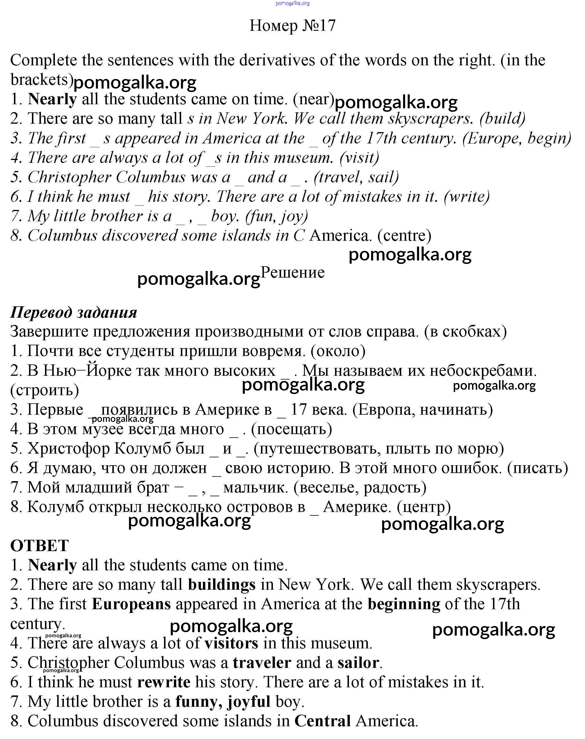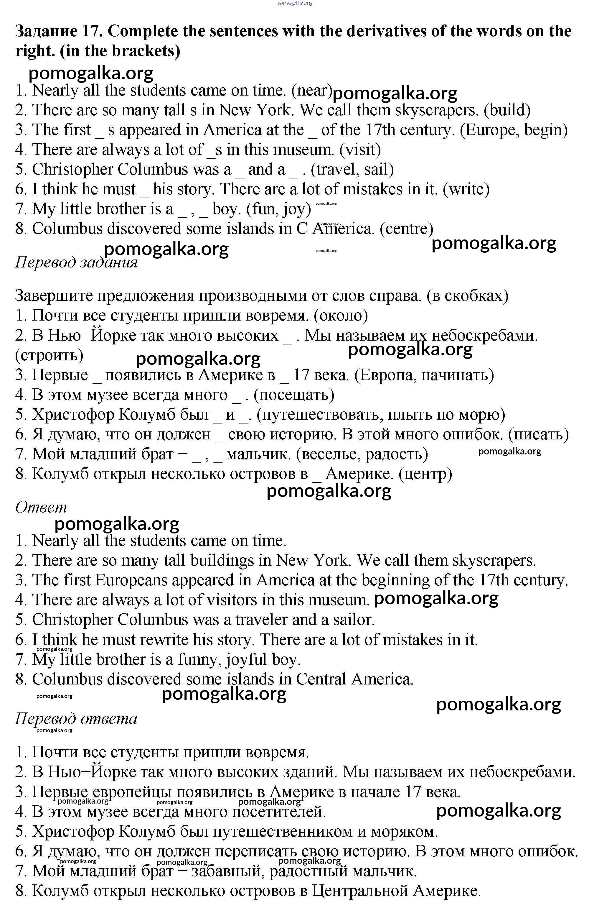 Готовые ответы - Английский язык 6 класс рабочая тетрадь Rainbow Афанасьева О.В. - unit four 17