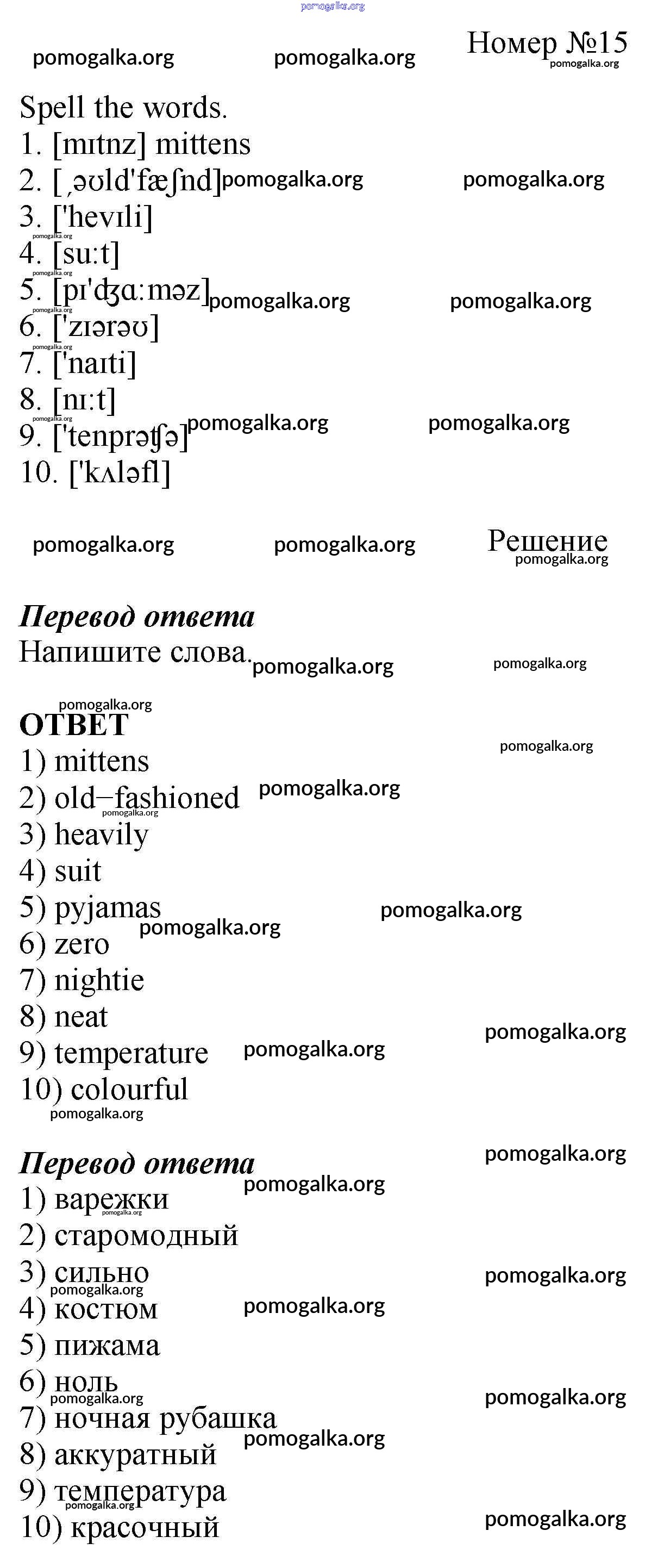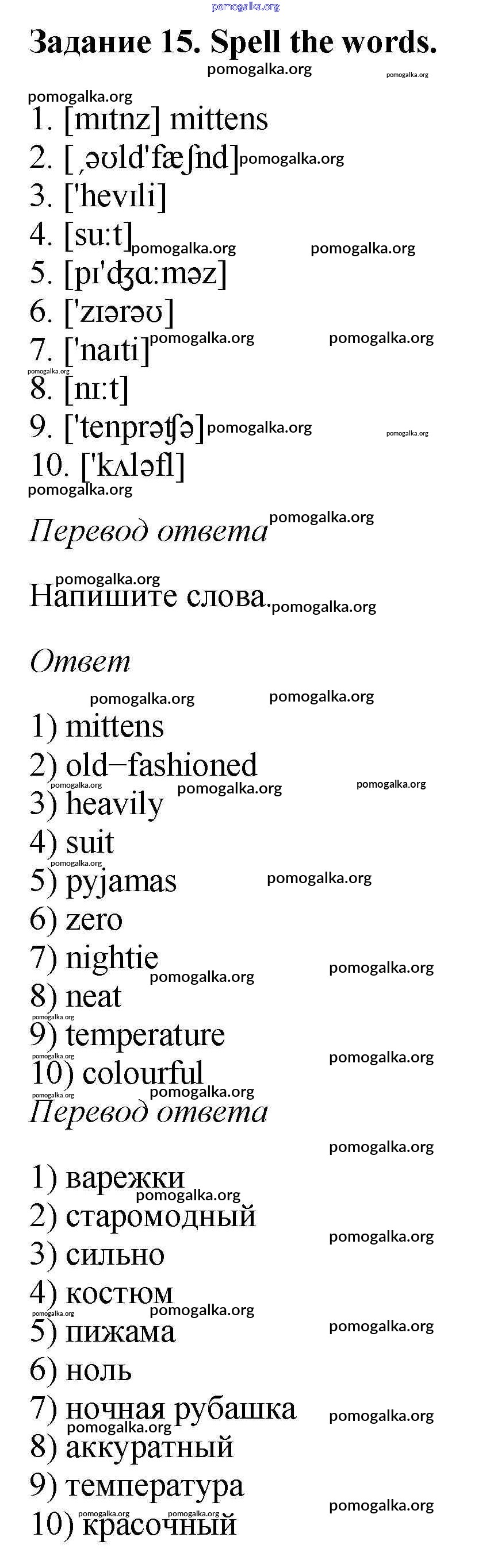 Готовые ответы - Английский язык 6 класс рабочая тетрадь Rainbow Афанасьева О.В. - unit five 15