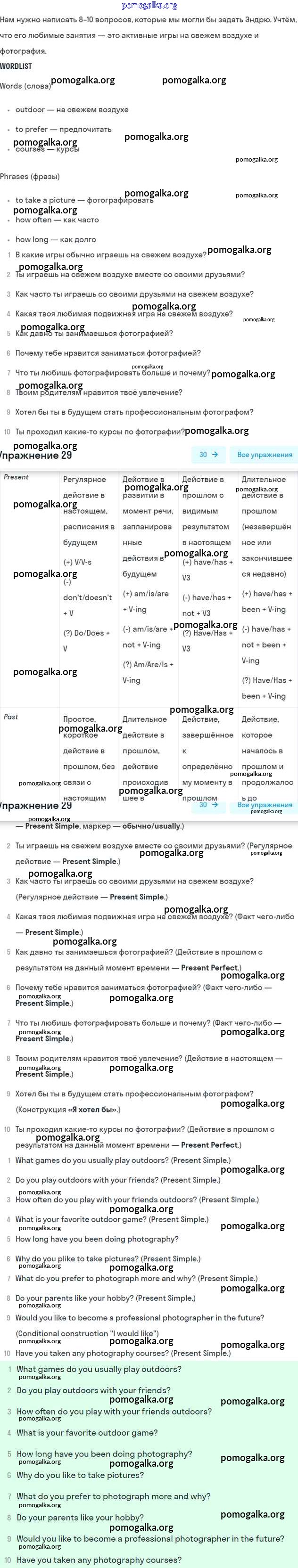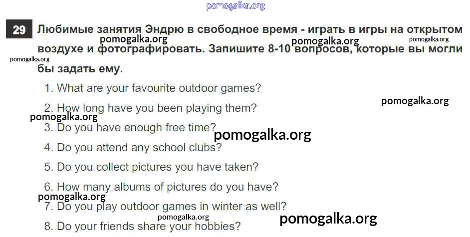 Готовые ответы - Английский язык 6 класс рабочая тетрадь Rainbow Афанасьева О.В. - unit five 29