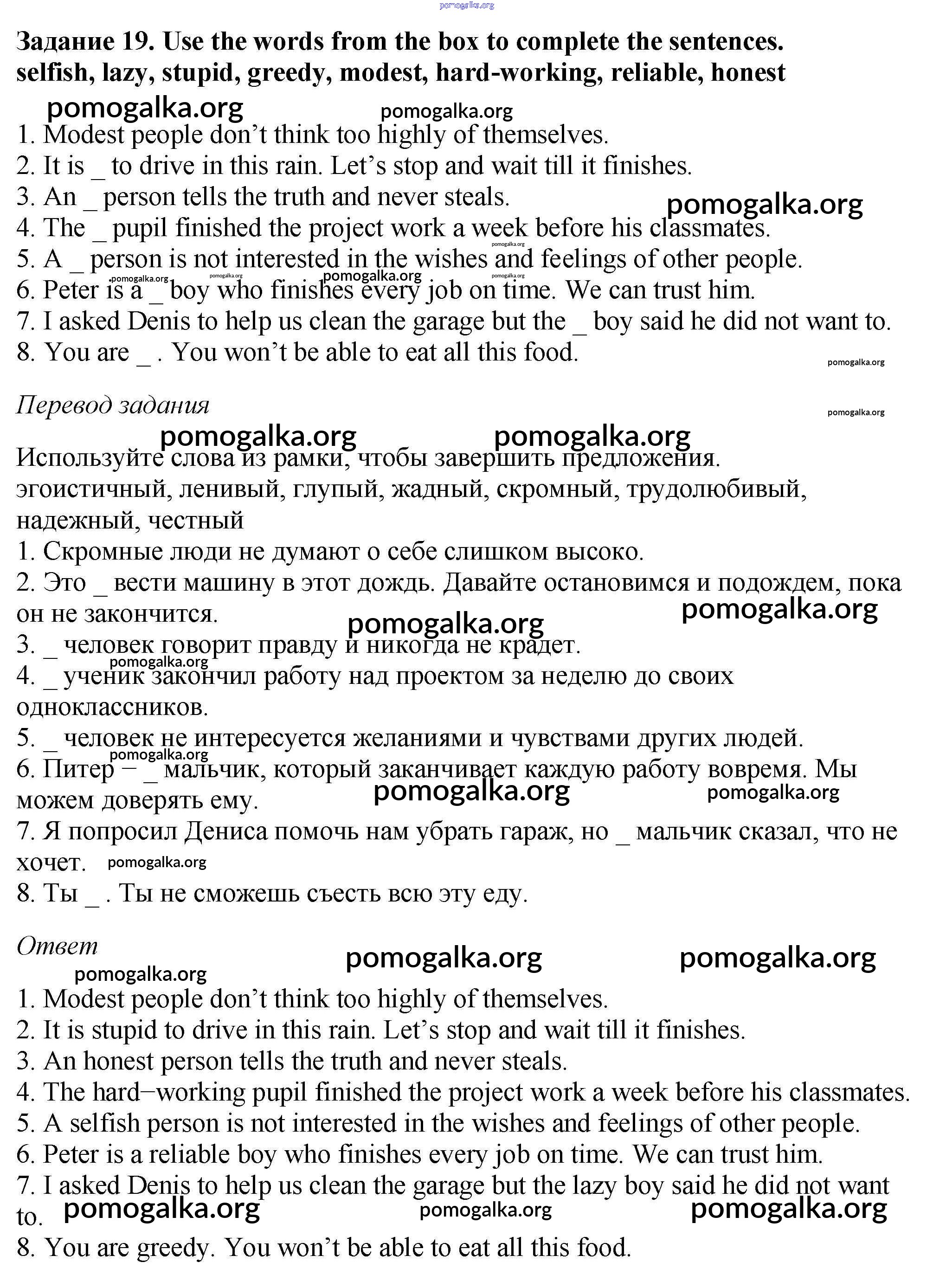 Готовые ответы - Английский язык 6 класс рабочая тетрадь Rainbow Афанасьева О.В. - unit six 19