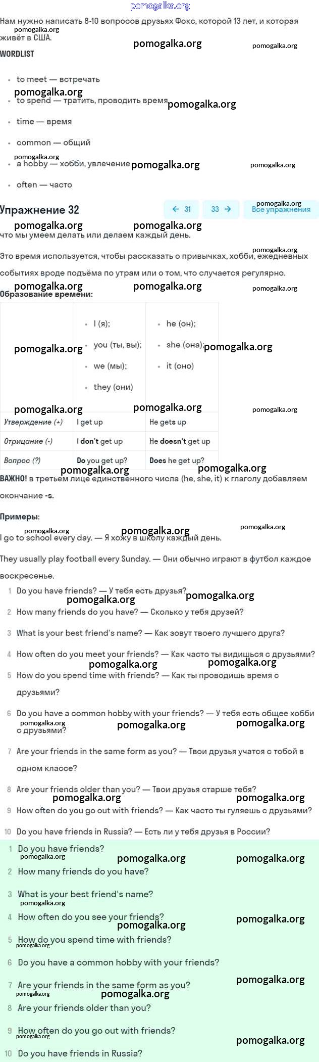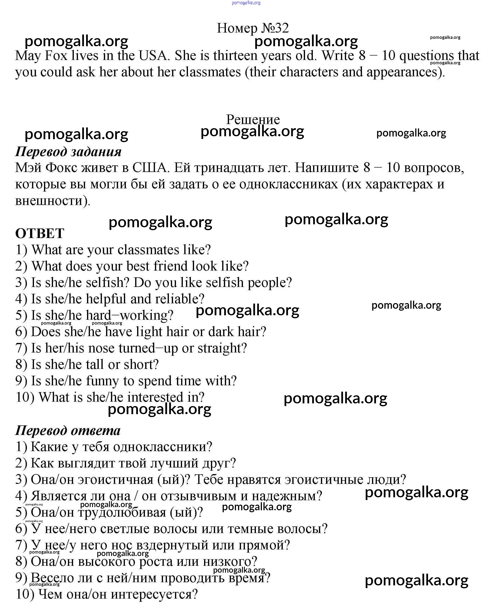 Готовые ответы - Английский язык 6 класс рабочая тетрадь Rainbow Афанасьева О.В. - unit six 32