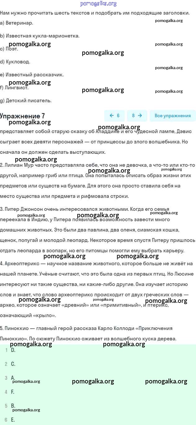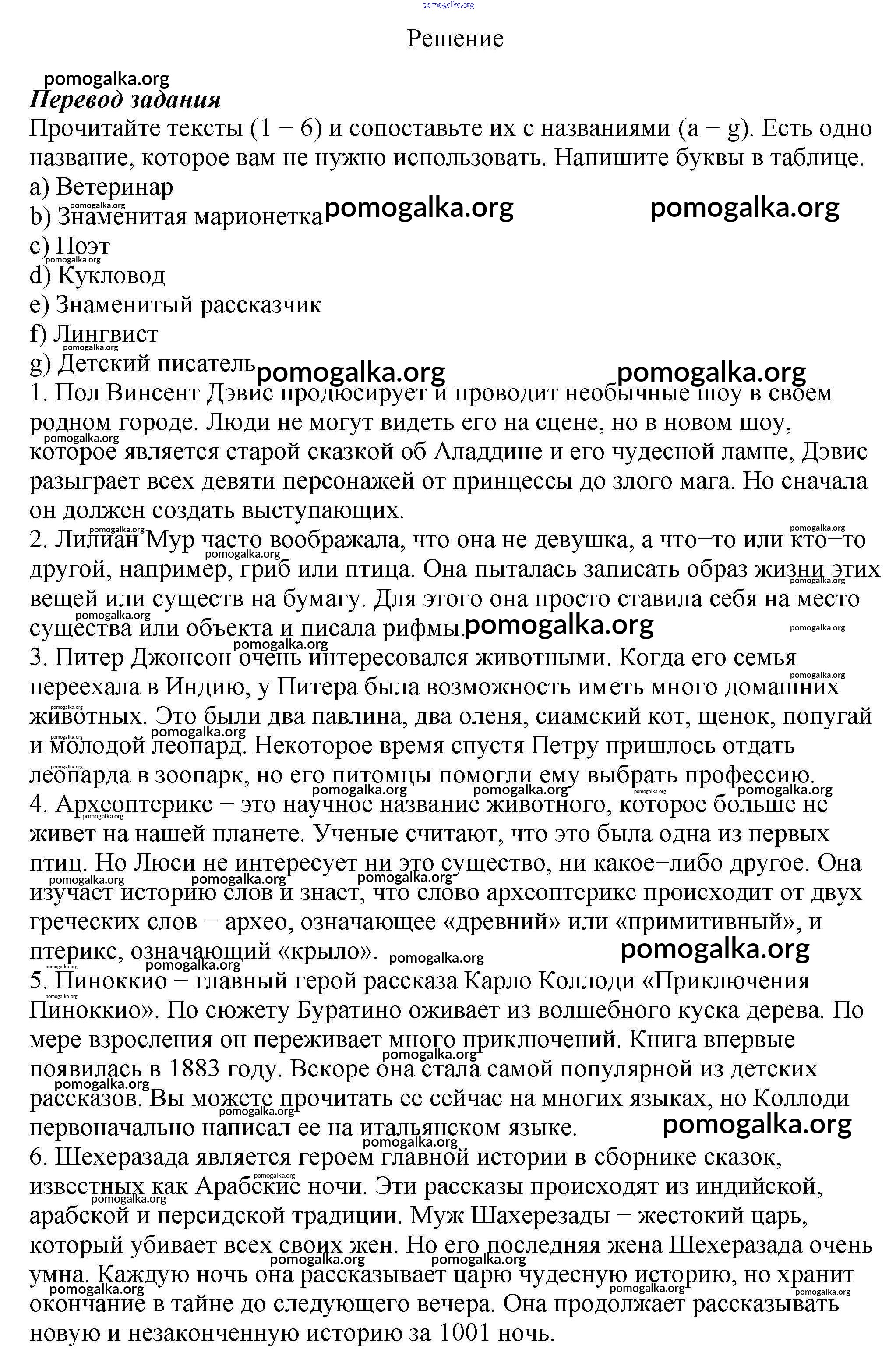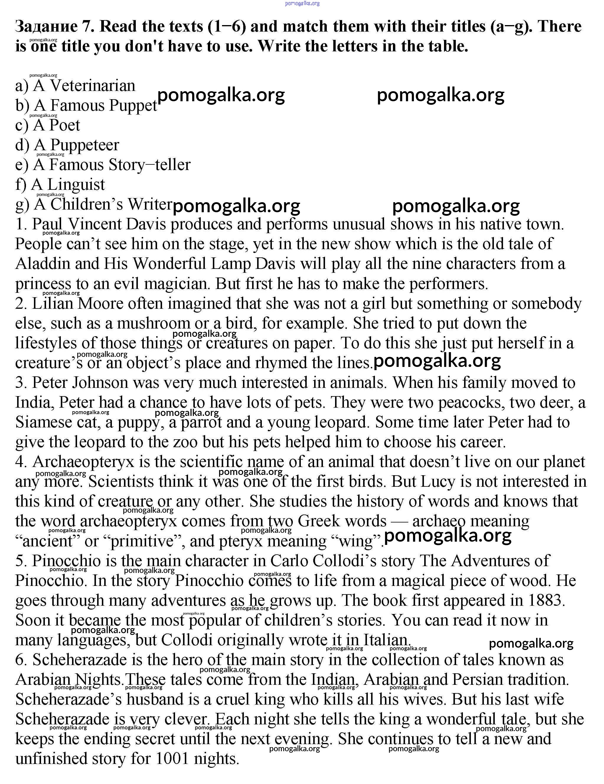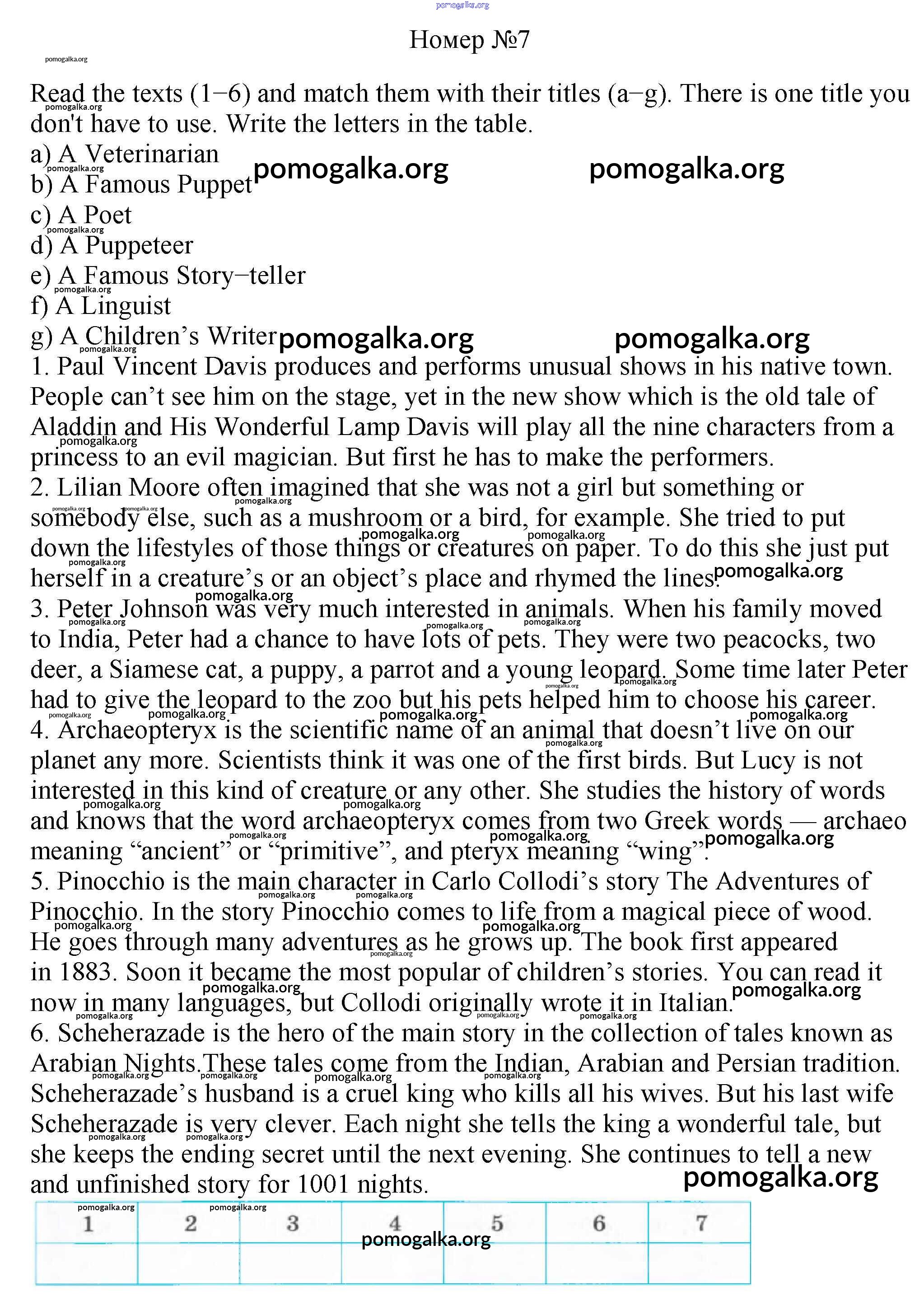 Готовые ответы - Английский язык 6 класс рабочая тетрадь Rainbow Афанасьева О.В. - unit six 7