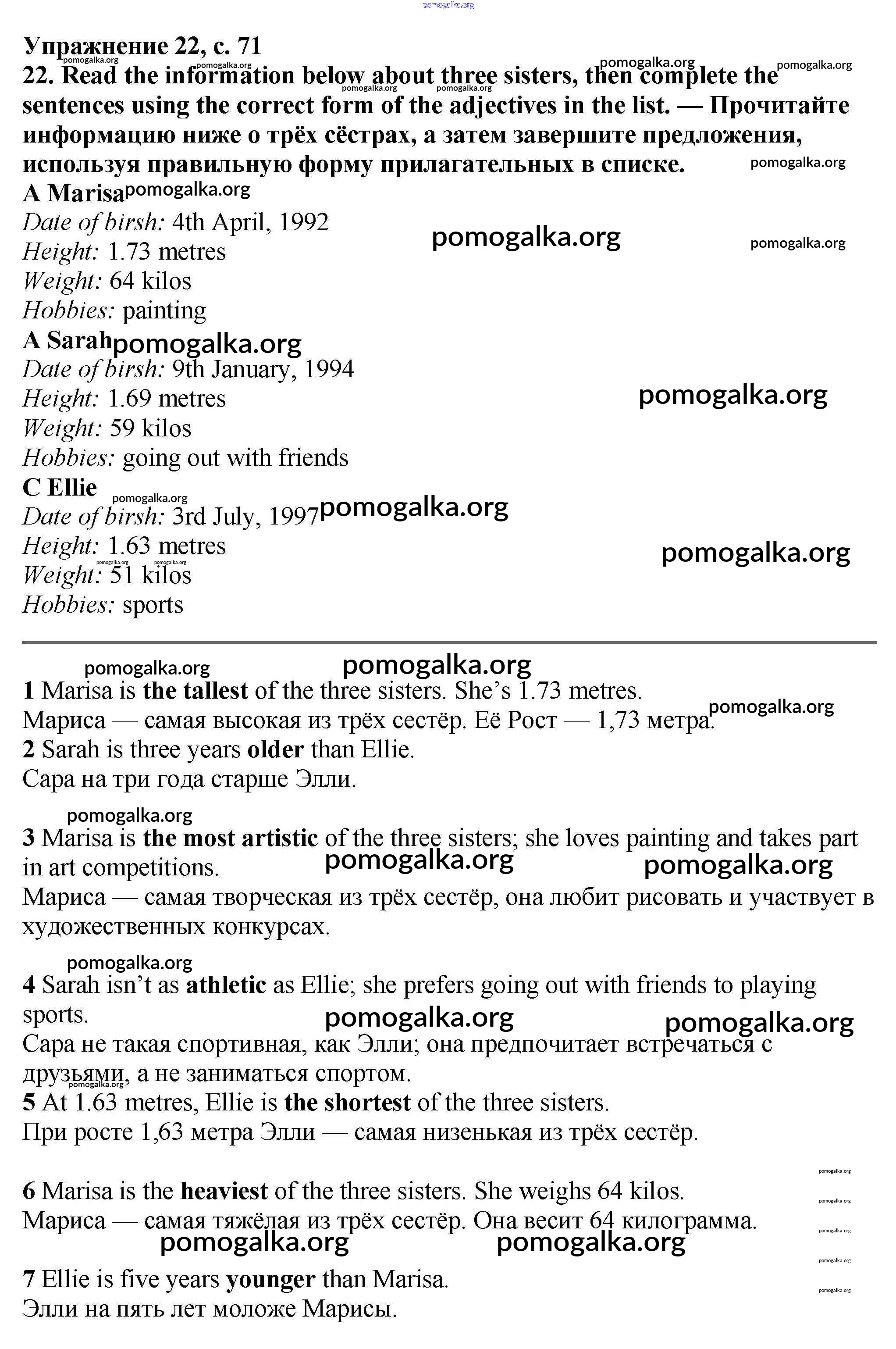 Готовые ответы - Английский язык 6 класс рабочая тетрадь Баранова - страница 71