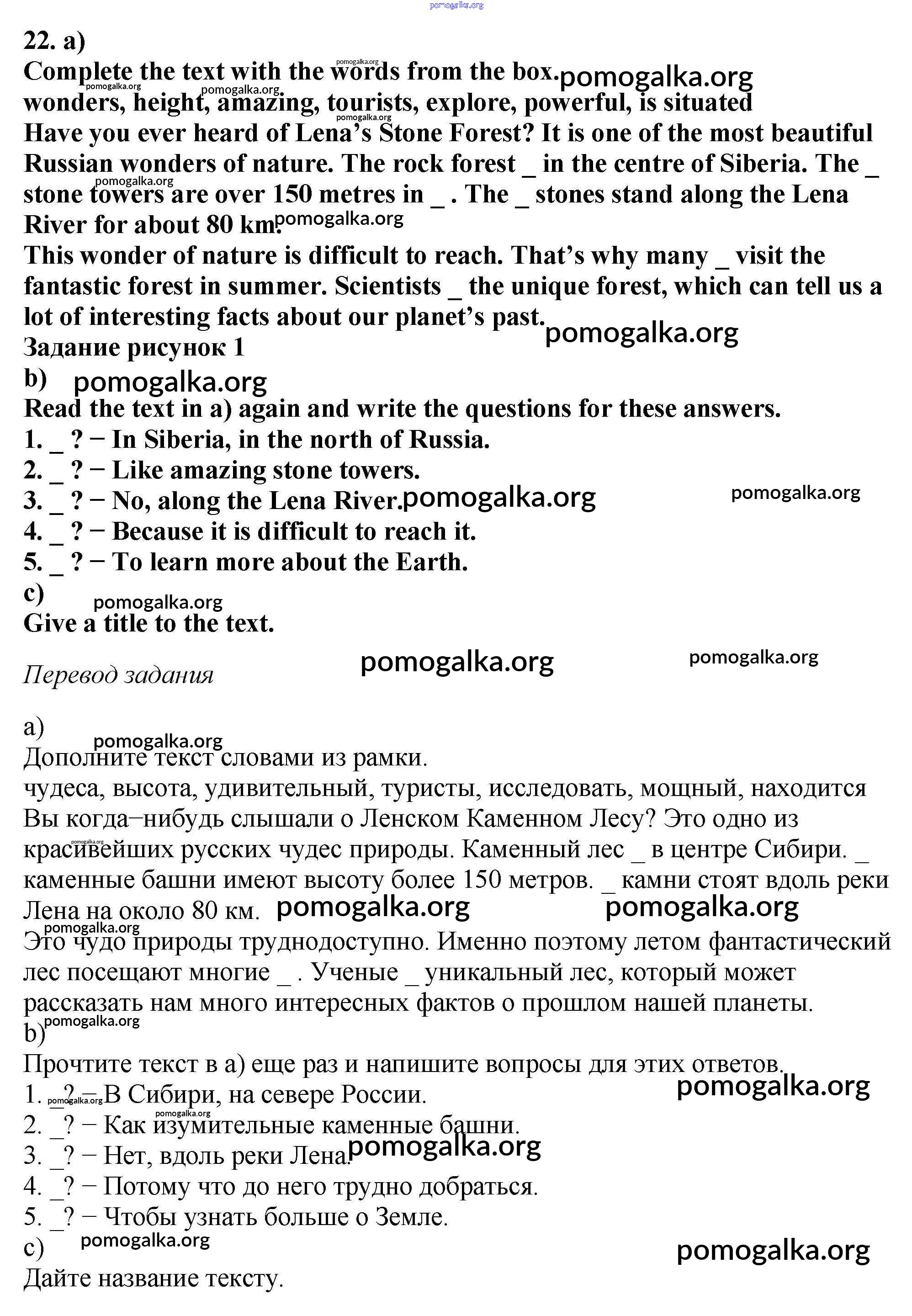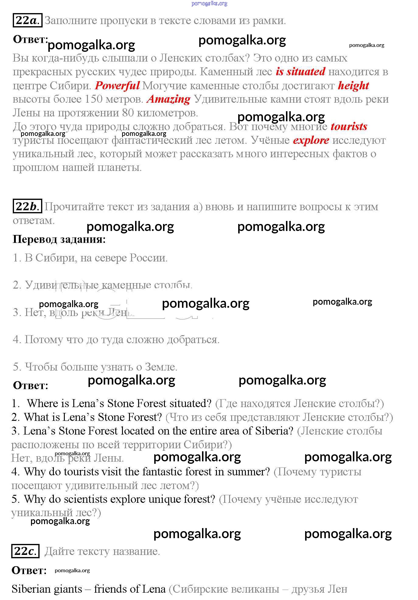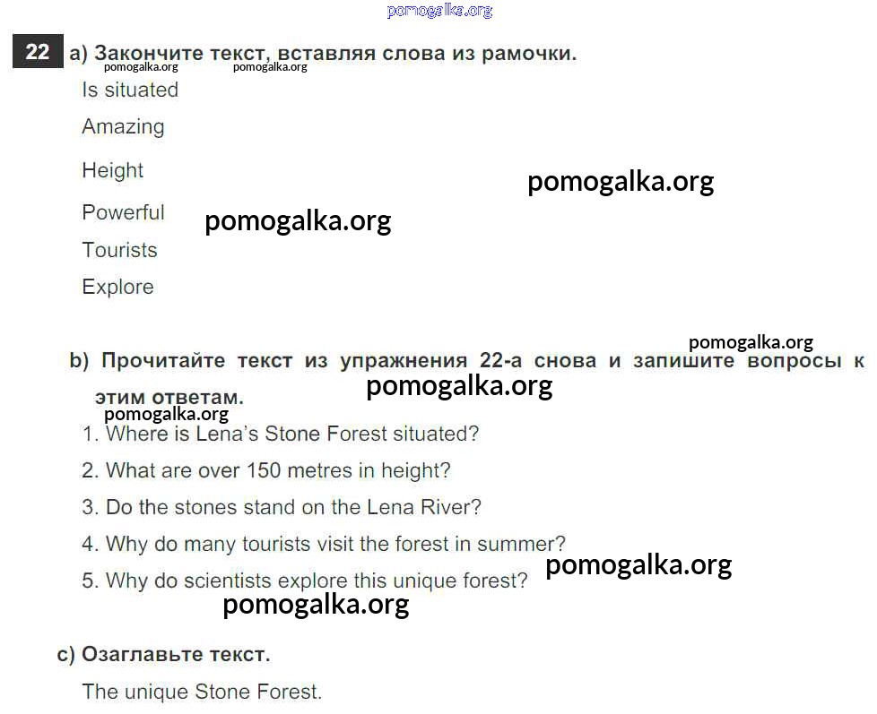 Готовые ответы - Английский язык 6 класс рабочая тетрадь Enjoy English Биболетова М.З. - exercise unit 1 22