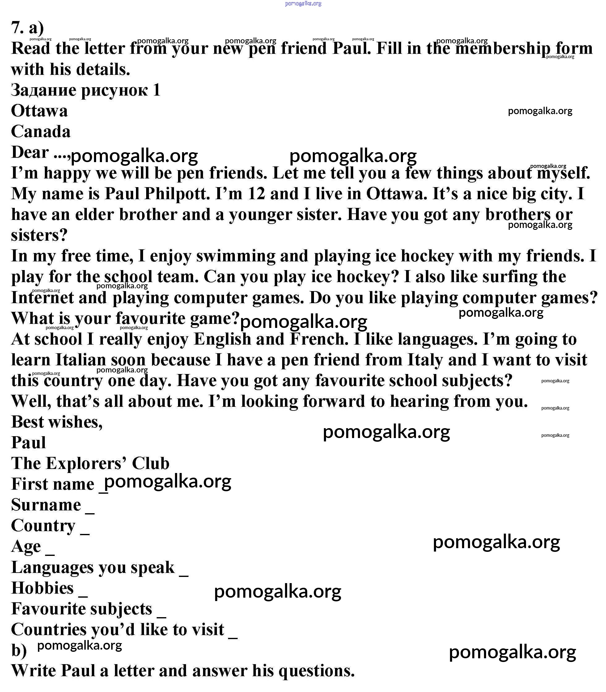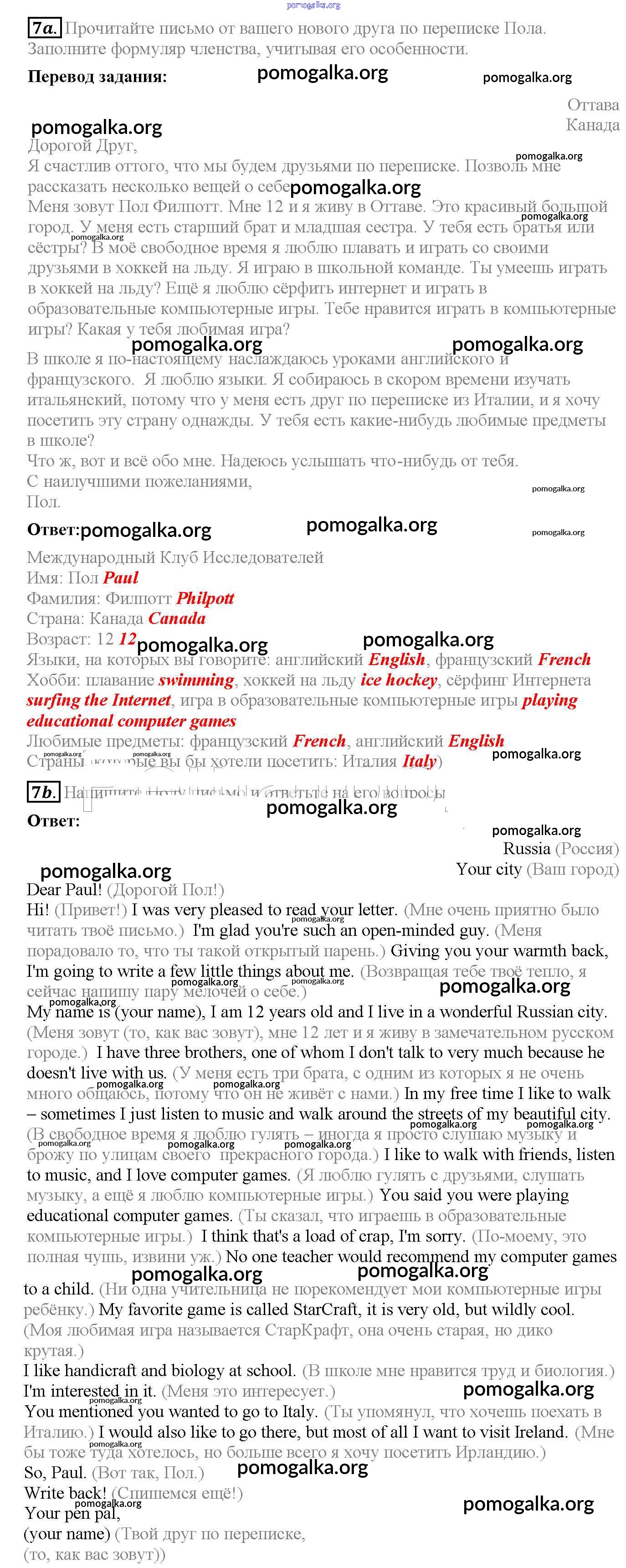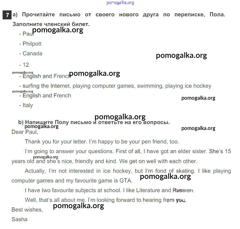 Готовые ответы - Английский язык 6 класс рабочая тетрадь Enjoy English Биболетова М.З. - exercise unit 1 7