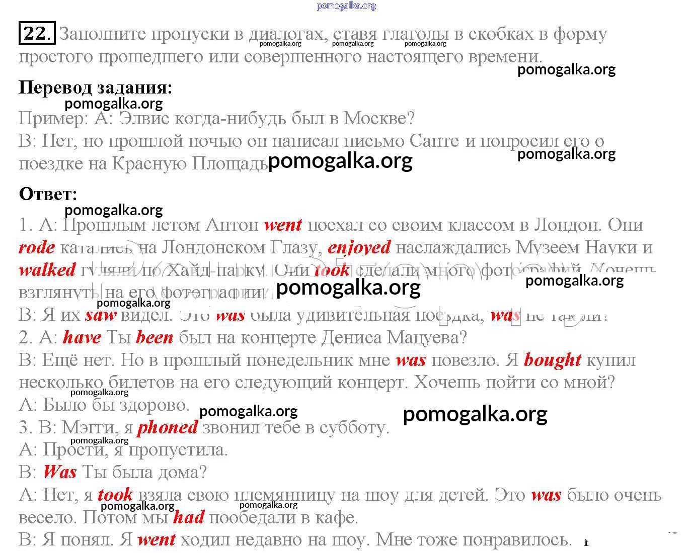 Готовые ответы - Английский язык 6 класс рабочая тетрадь Enjoy English Биболетова М.З. - exercise unit 2 22