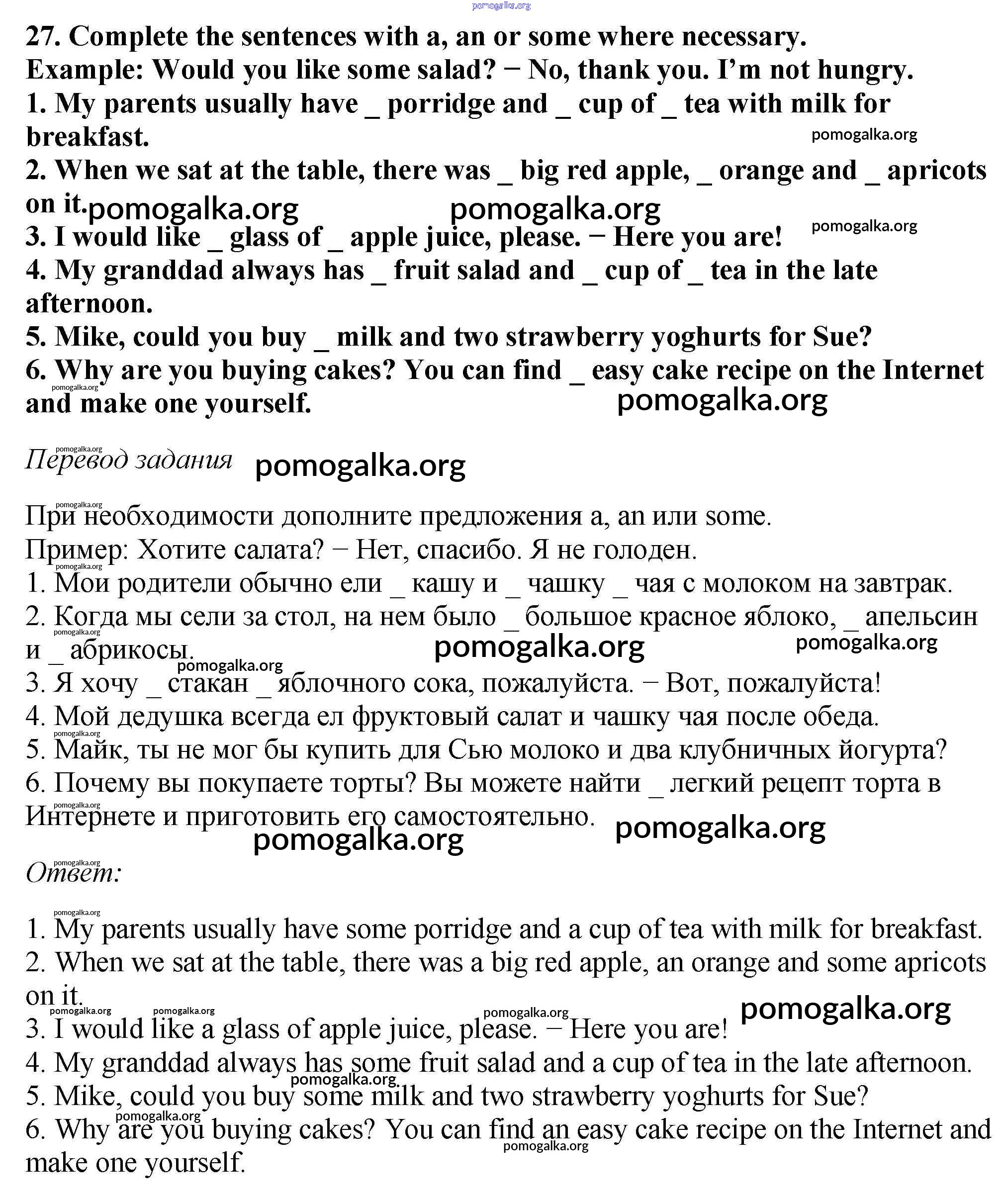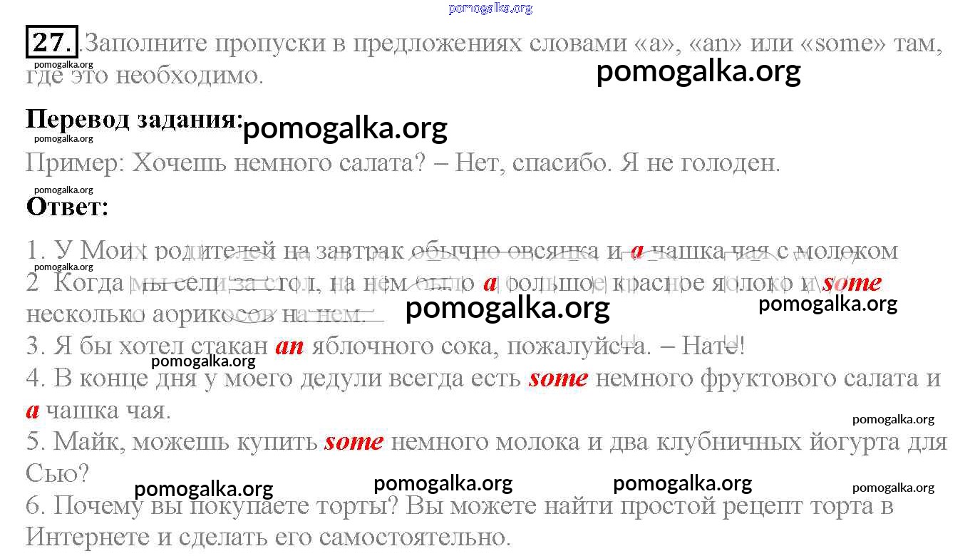 Готовые ответы - Английский язык 6 класс рабочая тетрадь Enjoy English Биболетова М.З. - exercise unit 2 27