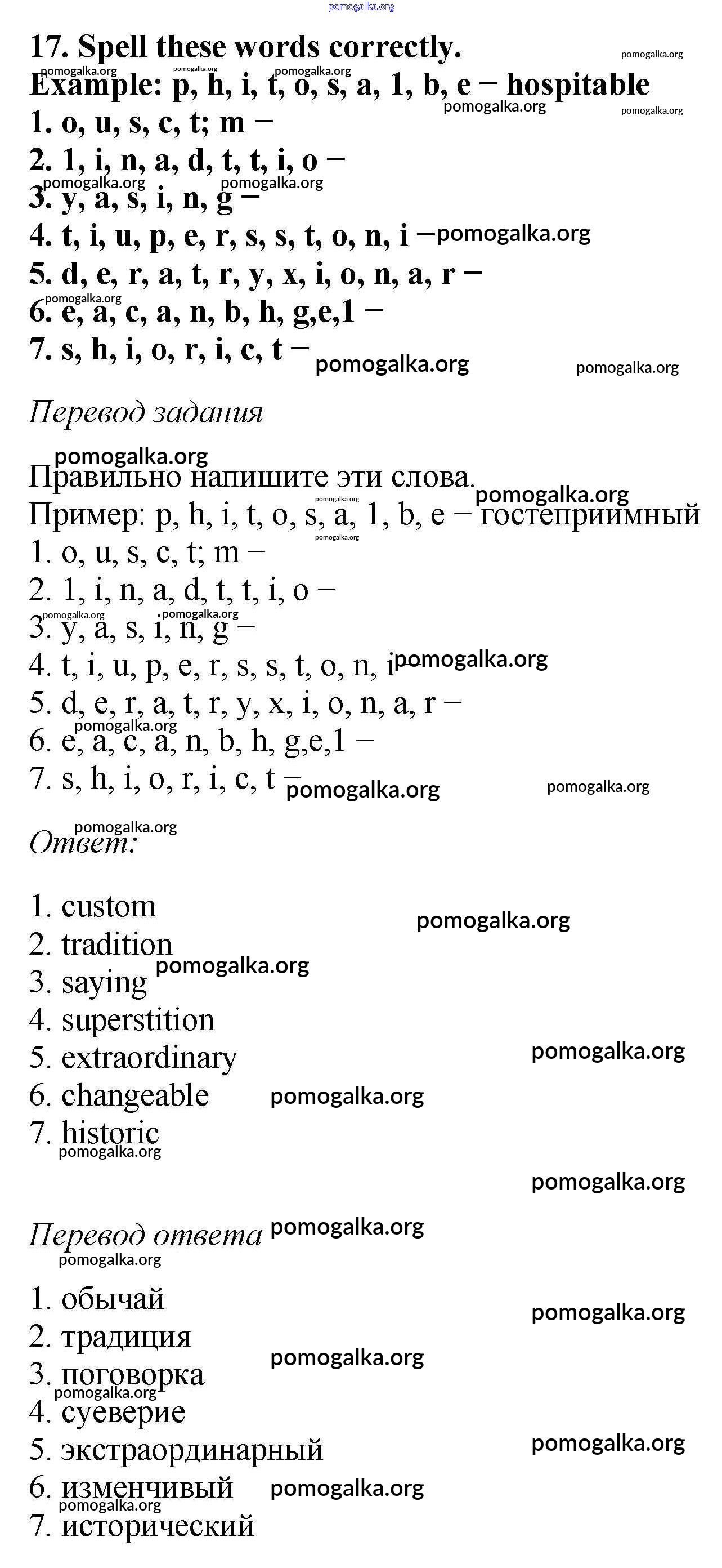 Готовые ответы - Английский язык 6 класс рабочая тетрадь Enjoy English Биболетова М.З. - exercise unit 3 17