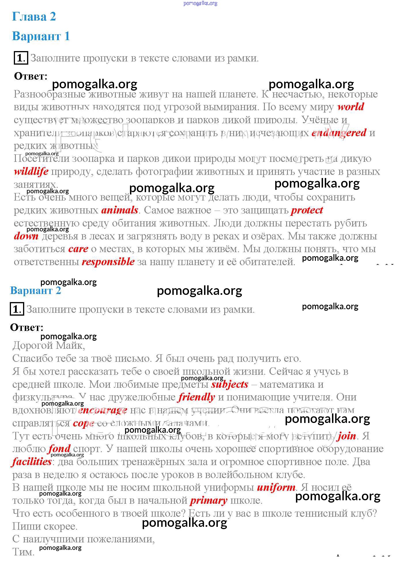 Готовые ответы - Английский язык 6 класс рабочая тетрадь Enjoy English Биболетова М.З. - unit 2 tests 1