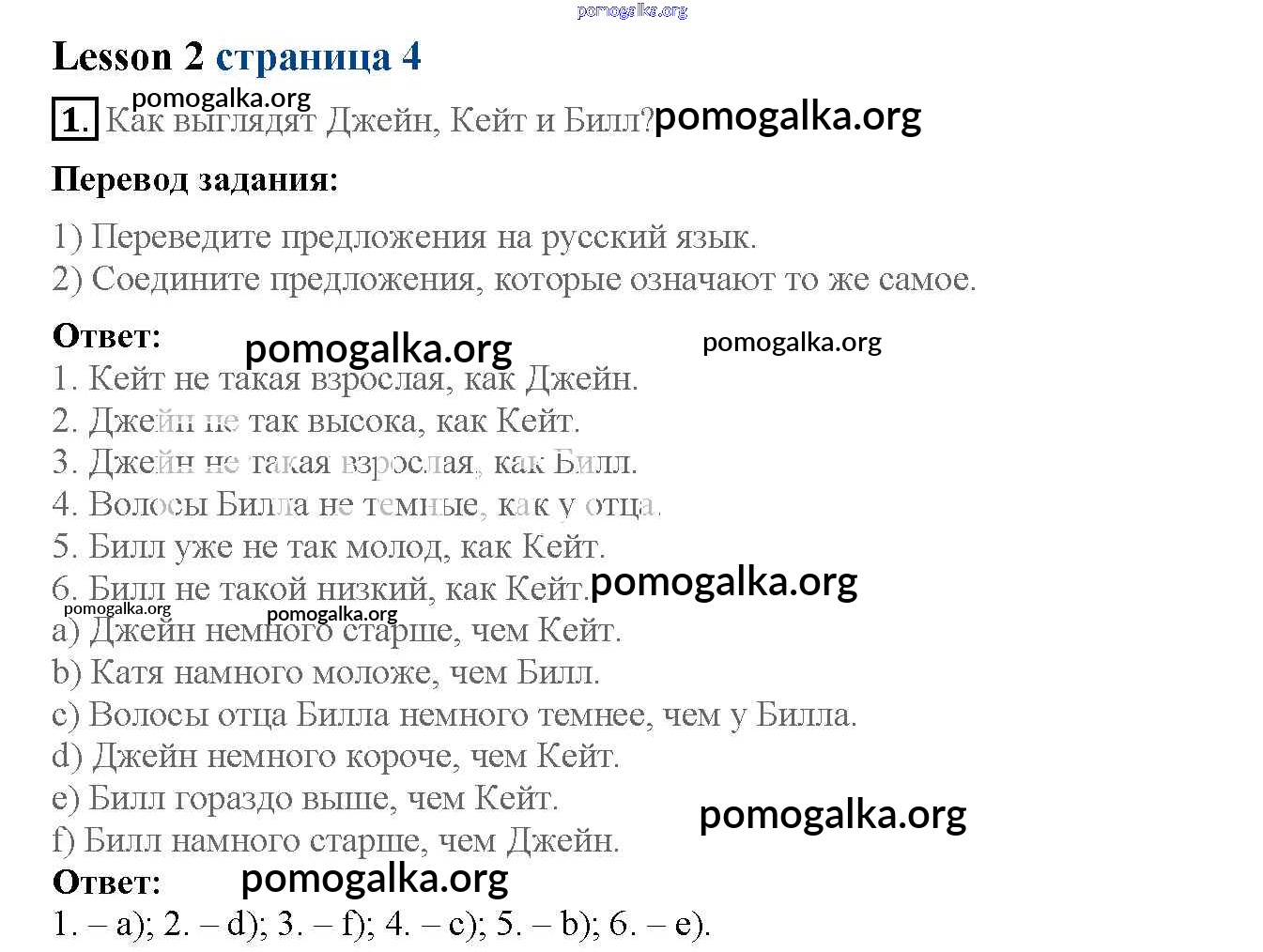 Готовые ответы - Английский язык 6 класс рабочая тетрадь Кузовлёв - lesson 2 unit 1 4