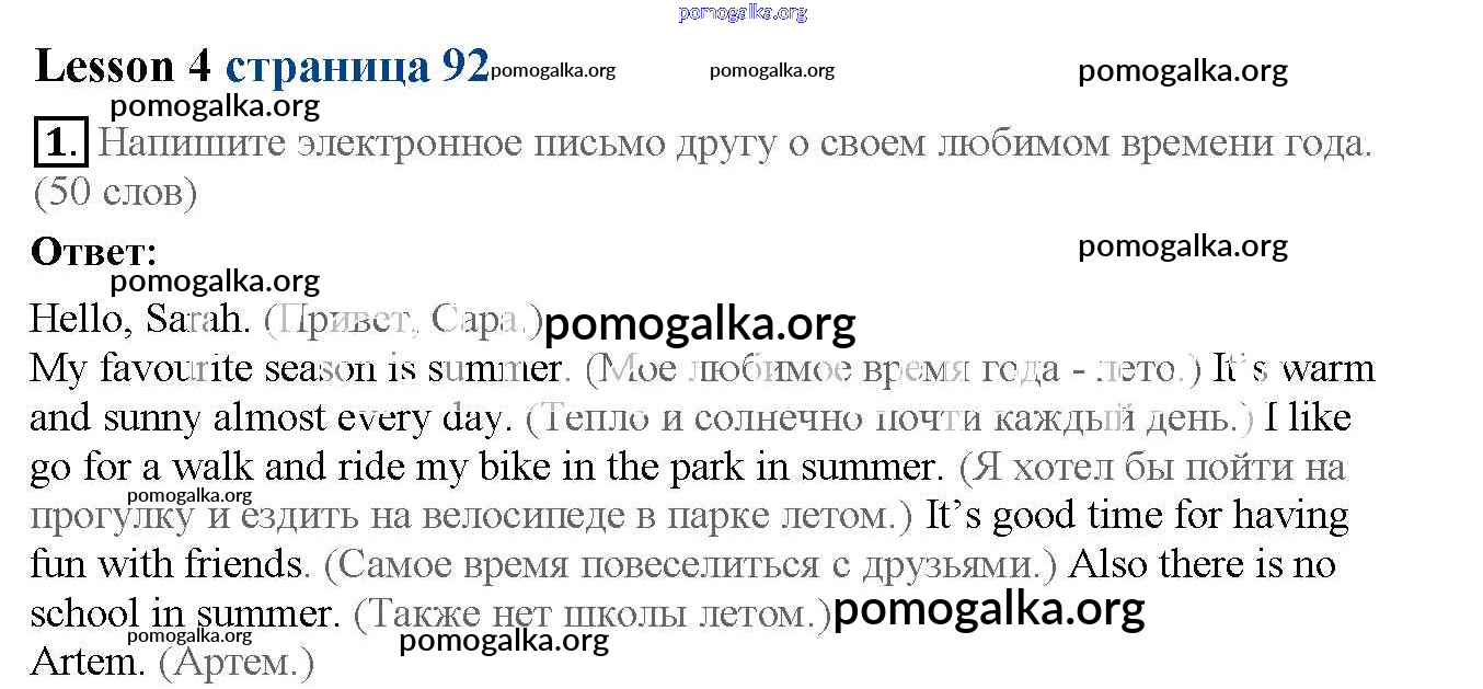 Готовые ответы - Английский язык 6 класс рабочая тетрадь Кузовлёв - lesson 4 unit 6 92