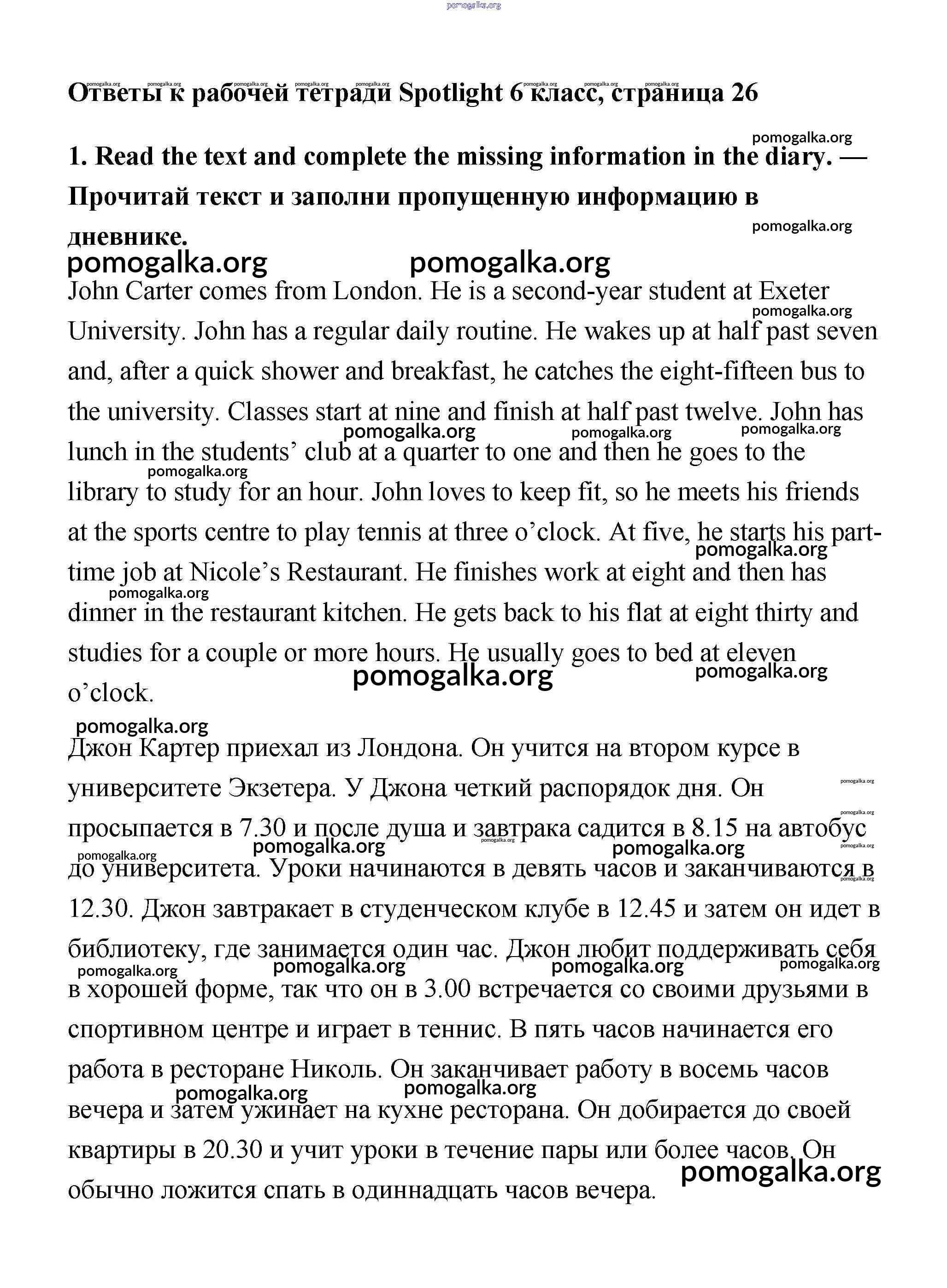 Готовые ответы - Английский 6 класс рабочая тетрадь Ваулина (2011) - страница 26