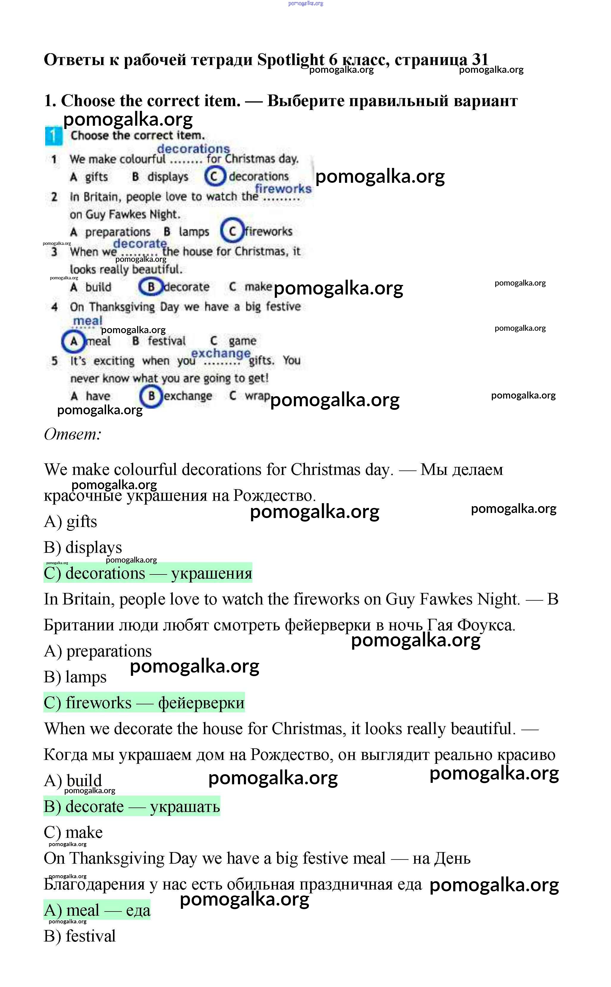 Готовые ответы - Английский 6 класс рабочая тетрадь Ваулина (2011) - страница 31
