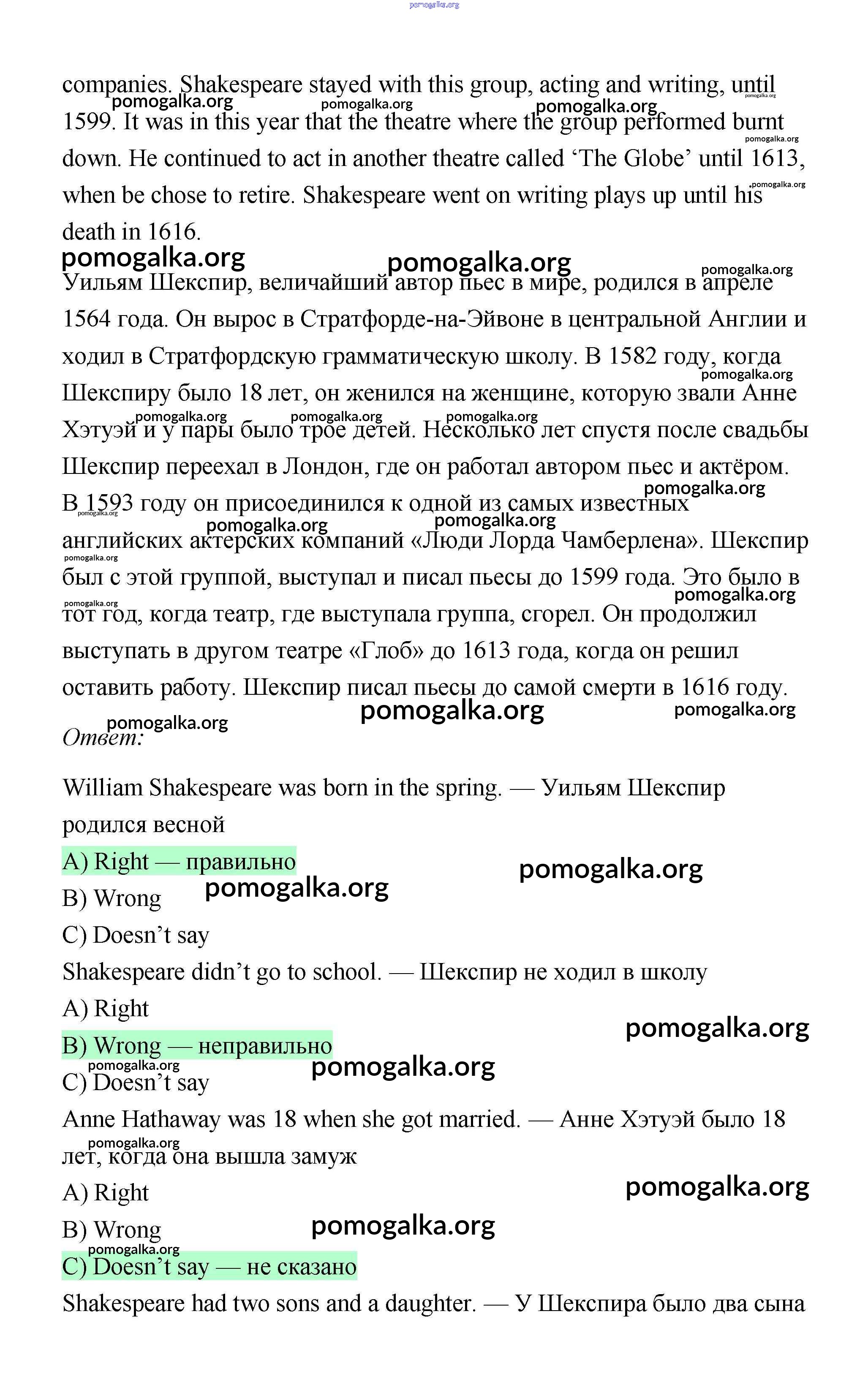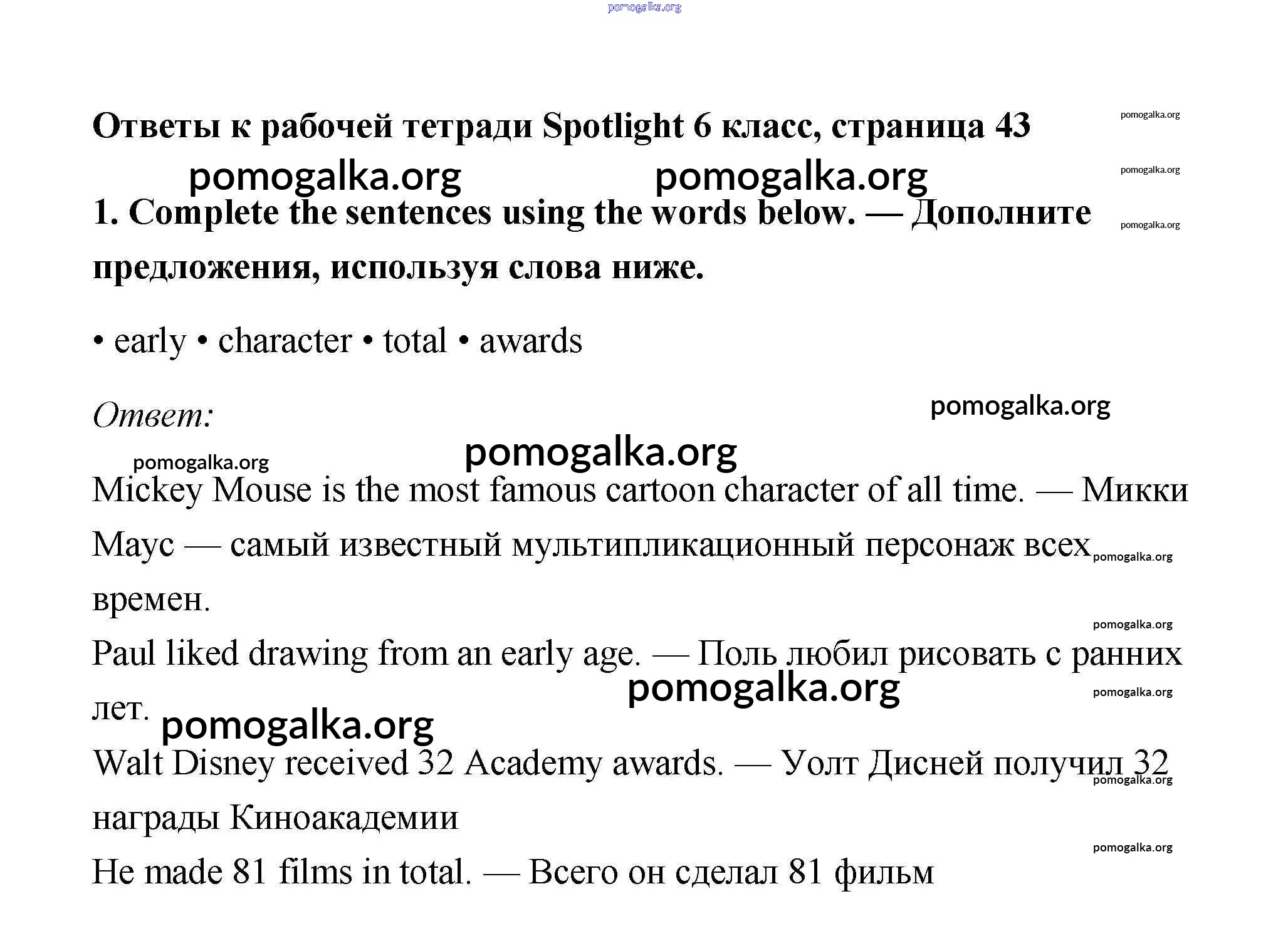 Готовые ответы - Английский 6 класс рабочая тетрадь Ваулина (2011) - страница 43