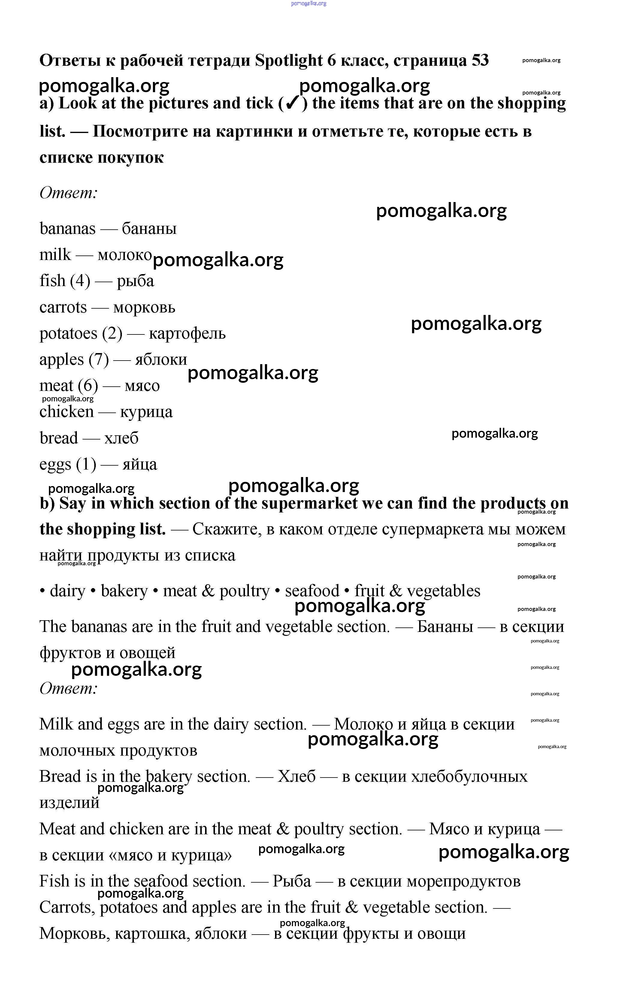 Готовые ответы - Английский 6 класс рабочая тетрадь Ваулина (2011) - страница 53