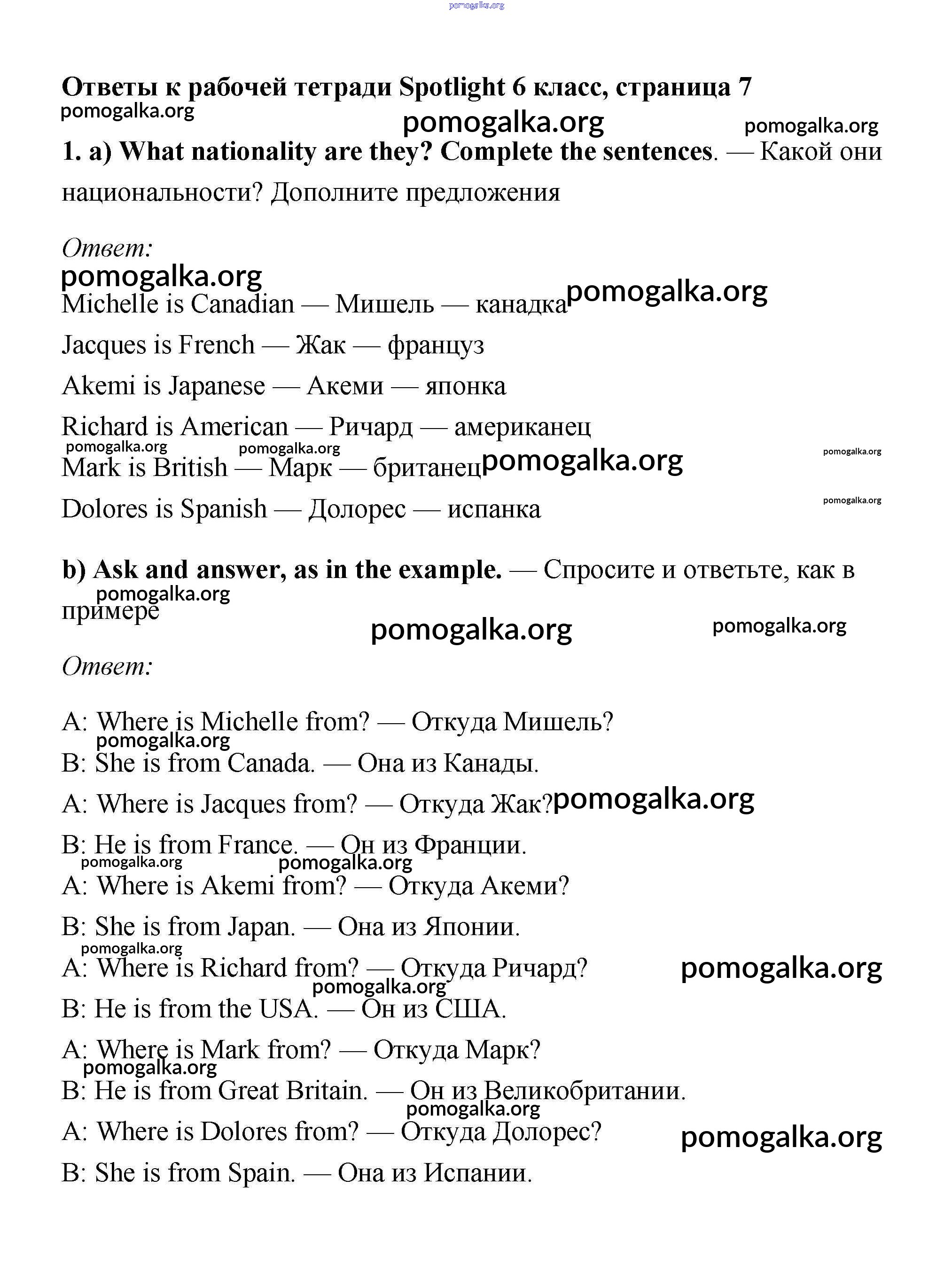 Готовые ответы - Английский 6 класс рабочая тетрадь Ваулина (2011) - страница 7