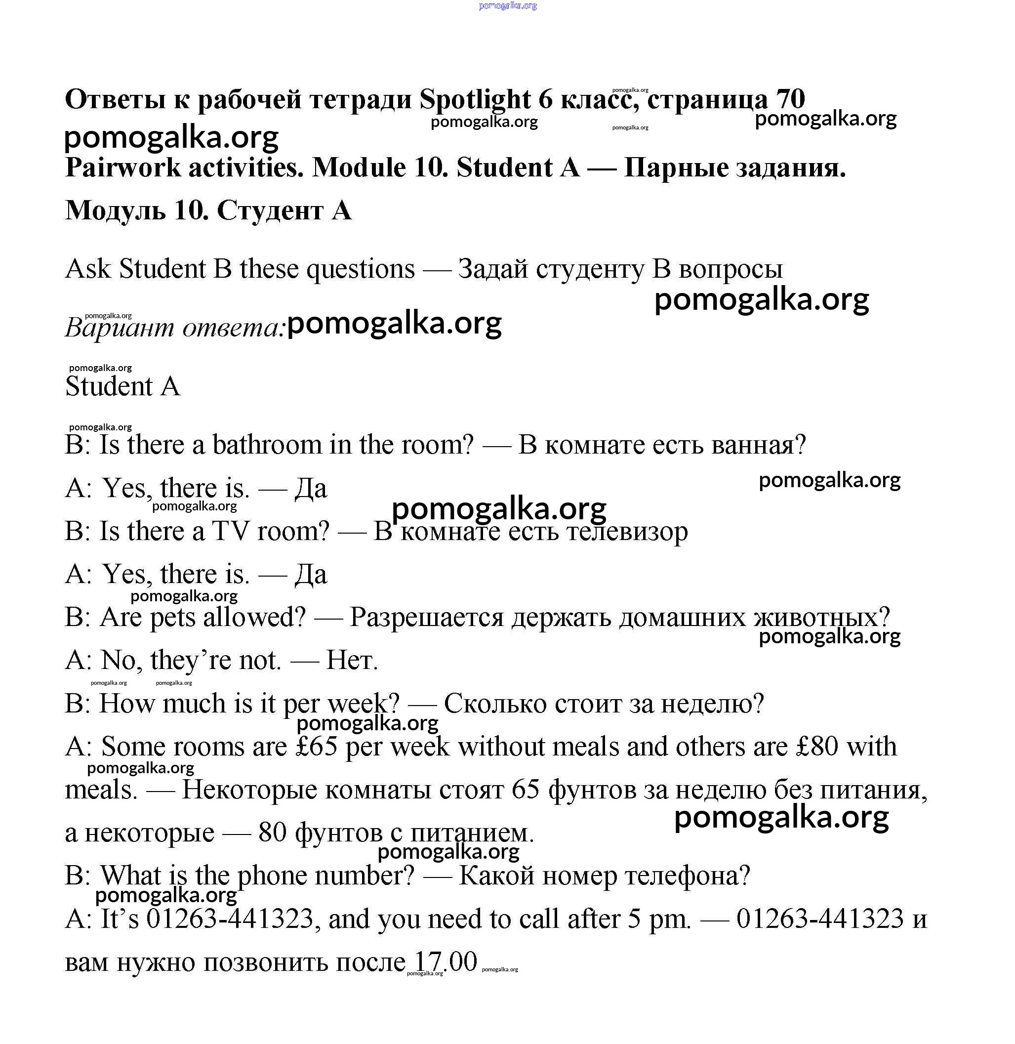 Готовые ответы - Английский 6 класс рабочая тетрадь Ваулина (2011) - страница 70