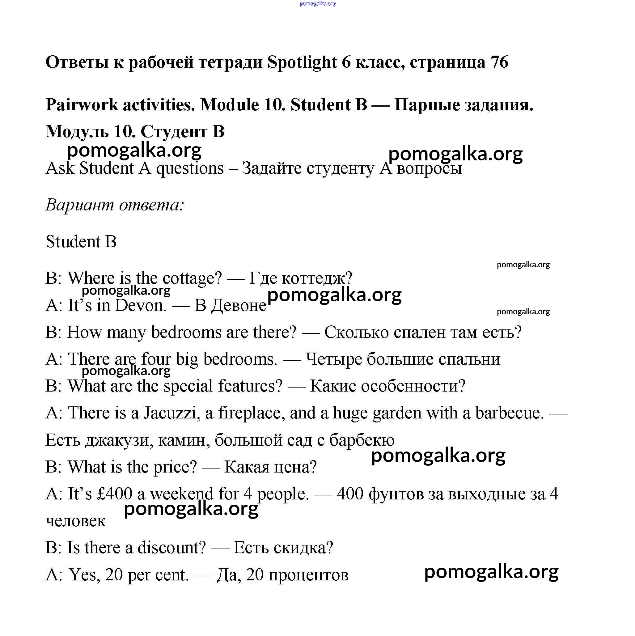 Готовые ответы - Английский 6 класс рабочая тетрадь Ваулина (2011) - страница 76