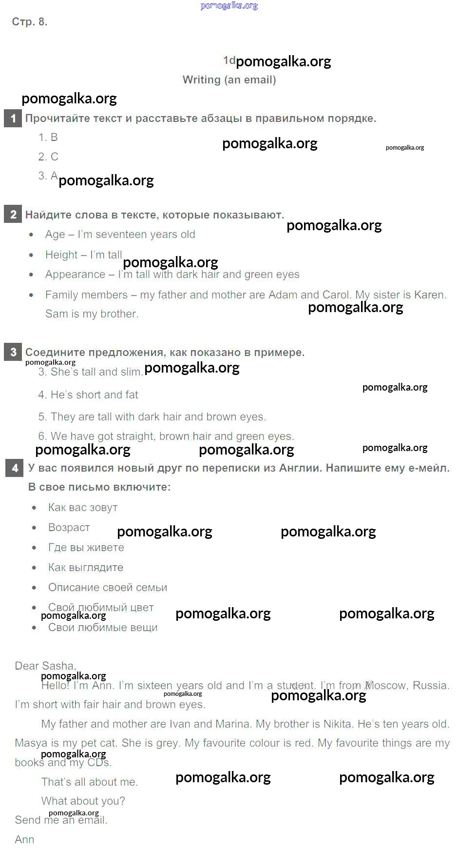 Готовые ответы - Английский язык 6 класс рабочая тетрадь Spotlight Ваулина Ю.Е. - страница 8