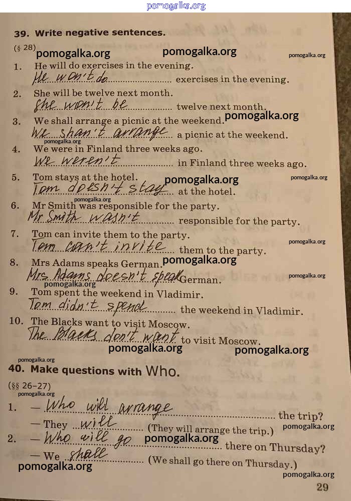 Готовые ответы - Английский язык. Грамматика английского языка 5-6 класс Сборник упражнений Барашкова Е.А. (к уч. Биболетовой) - unit 2 часть 1 стр.29