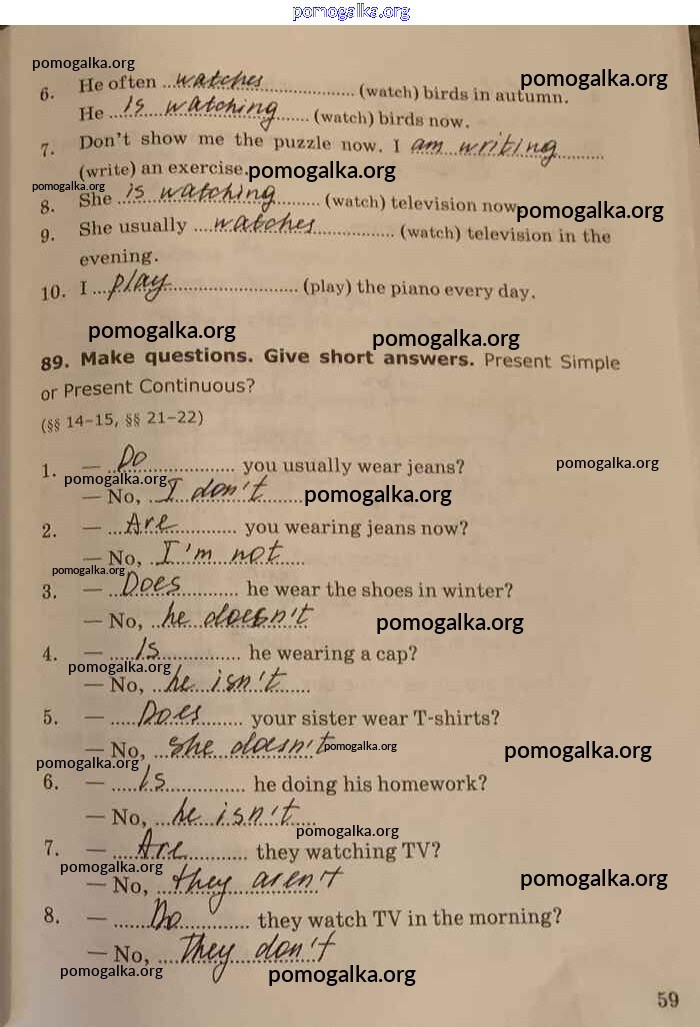 Готовые ответы - Английский язык. Грамматика английского языка 5-6 класс Сборник упражнений Барашкова Е.А. (к уч. Биболетовой) - unit 3 часть 1 стр.59