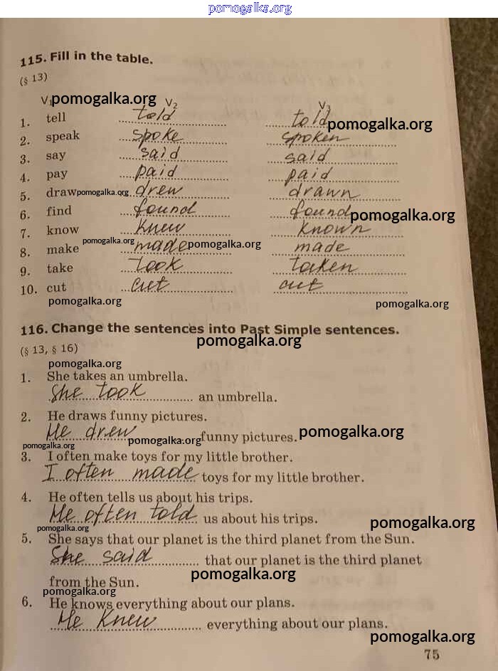 Готовые ответы - Английский язык. Грамматика английского языка 5-6 класс Сборник упражнений Барашкова Е.А. (к уч. Биболетовой) - unit 4 часть 1 стр.75
