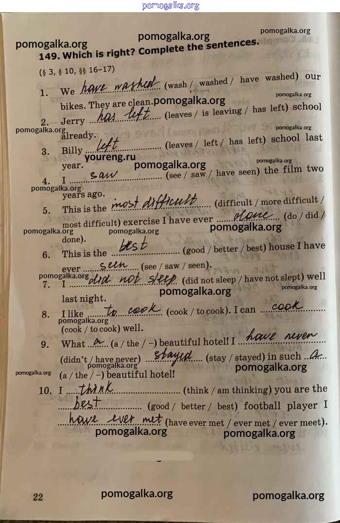 Готовые ответы - Английский язык. Грамматика английского языка 5-6 класс Сборник упражнений Барашкова Е.А. (к уч. Биболетовой) - unit 5 часть 2 стр.22