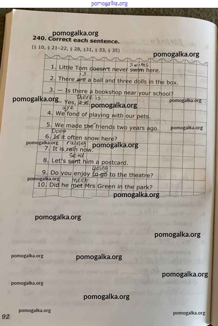 Готовые ответы - Английский язык. Грамматика английского языка 5-6 класс Сборник упражнений Барашкова Е.А. (к уч. Биболетовой) - unit 8 часть 2 стр.92