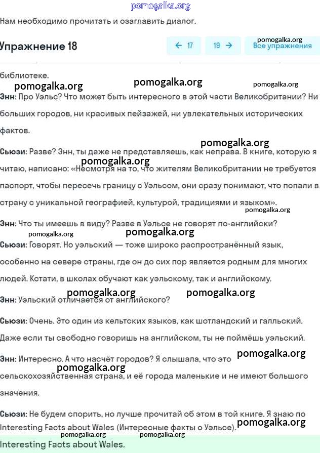 Готовые ответы - Английский язык 6 класс Афанасьева (Углубленный курс) - unit 14. wales часть 2 18