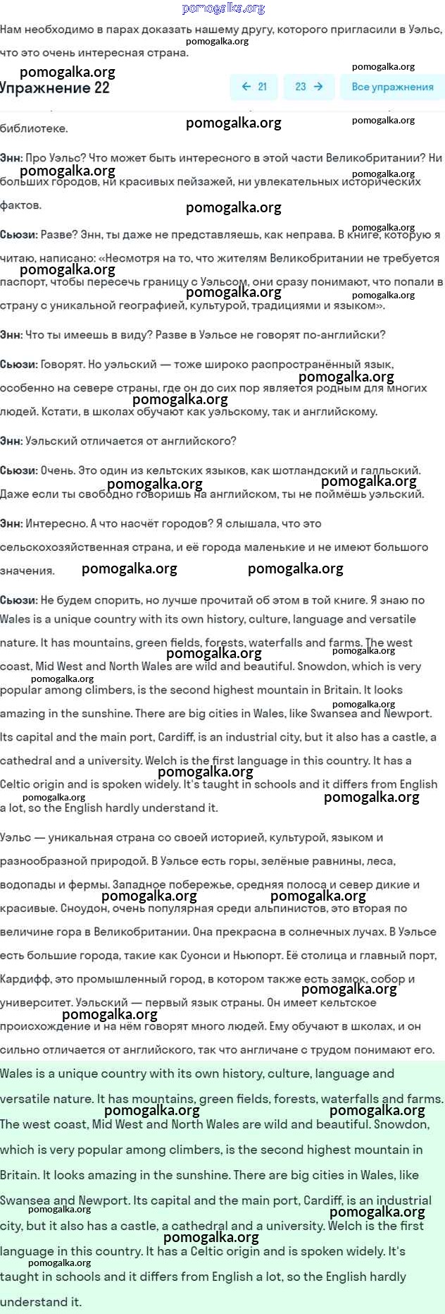 Готовые ответы - Английский язык 6 класс Афанасьева (Углубленный курс) - unit 14. wales часть 2 22