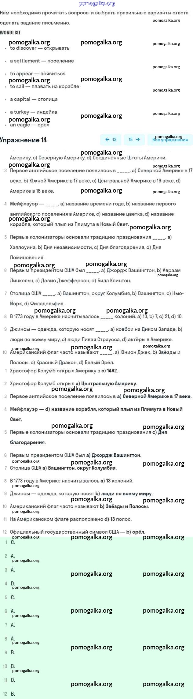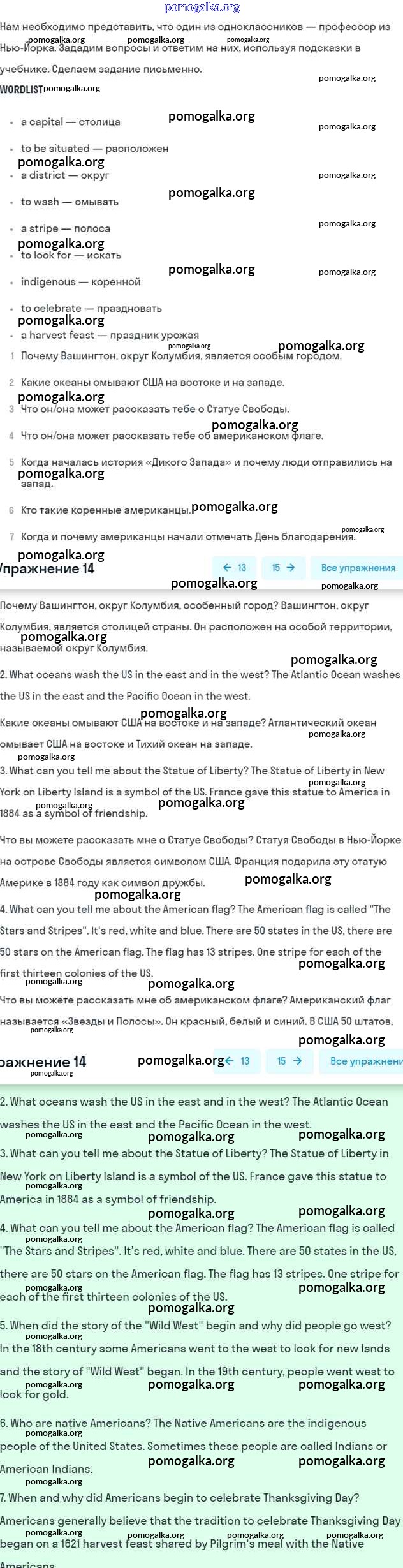 Готовые ответы - Английский язык 6 класс Афанасьева (Углубленный курс) - unit 15. how much do we know about the USA часть 2 14