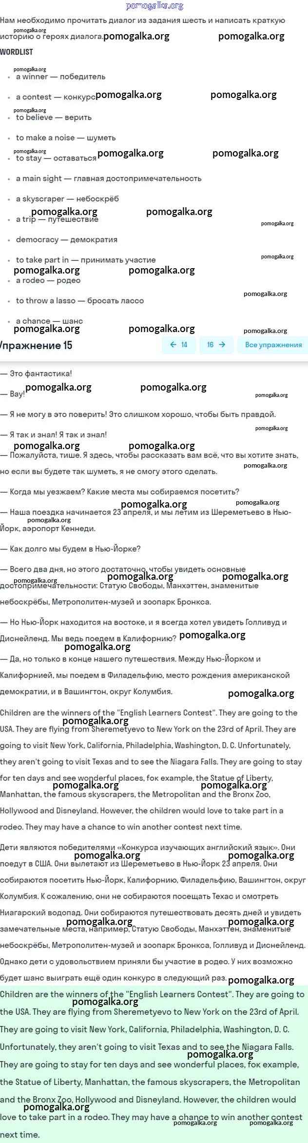 Готовые ответы - Английский язык 6 класс Афанасьева (Углубленный курс) - unit 15. how much do we know about the USA часть 2 15