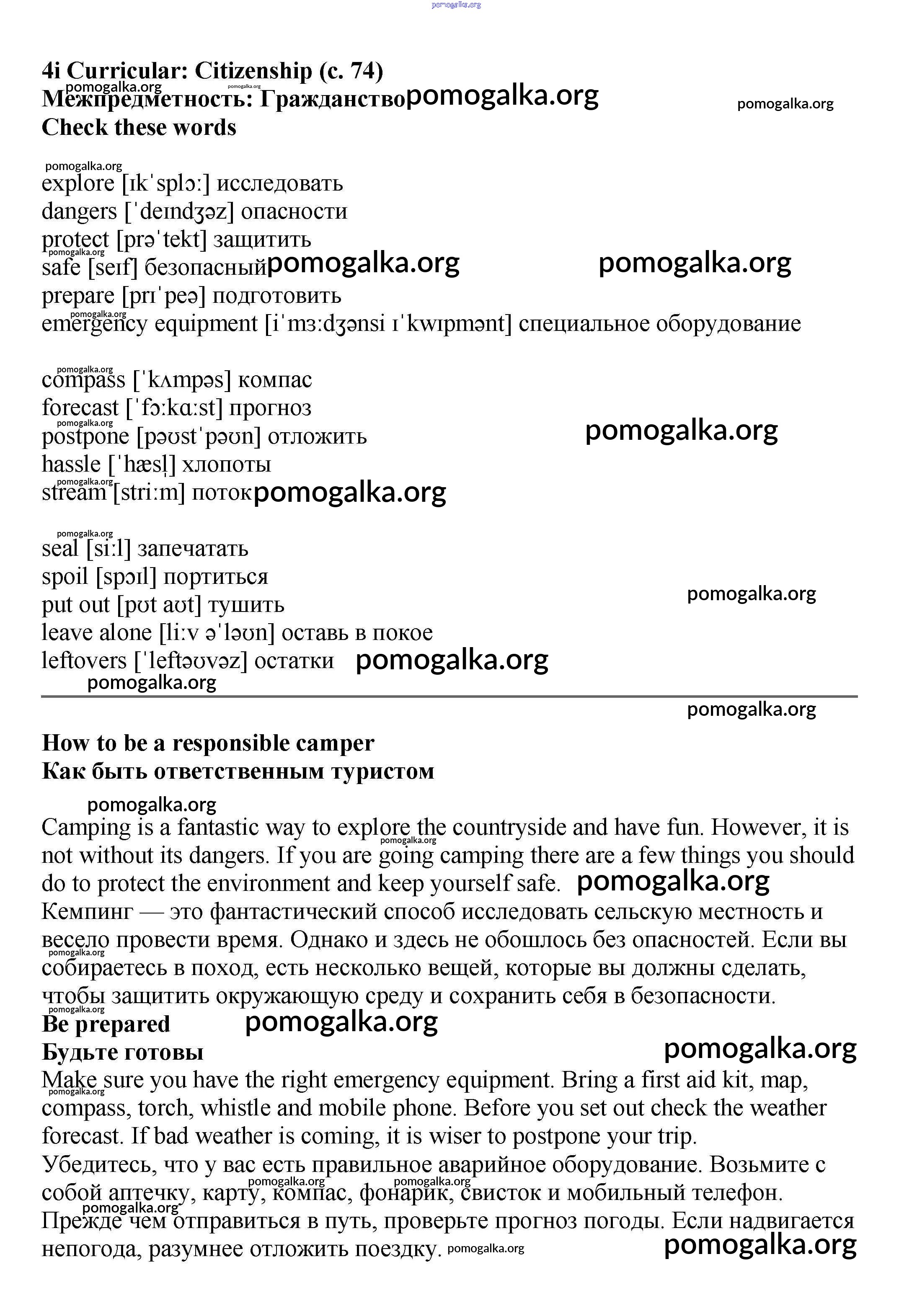 Готовые ответы - Английский язык 6 класс Starlight Баранова - module 4 74