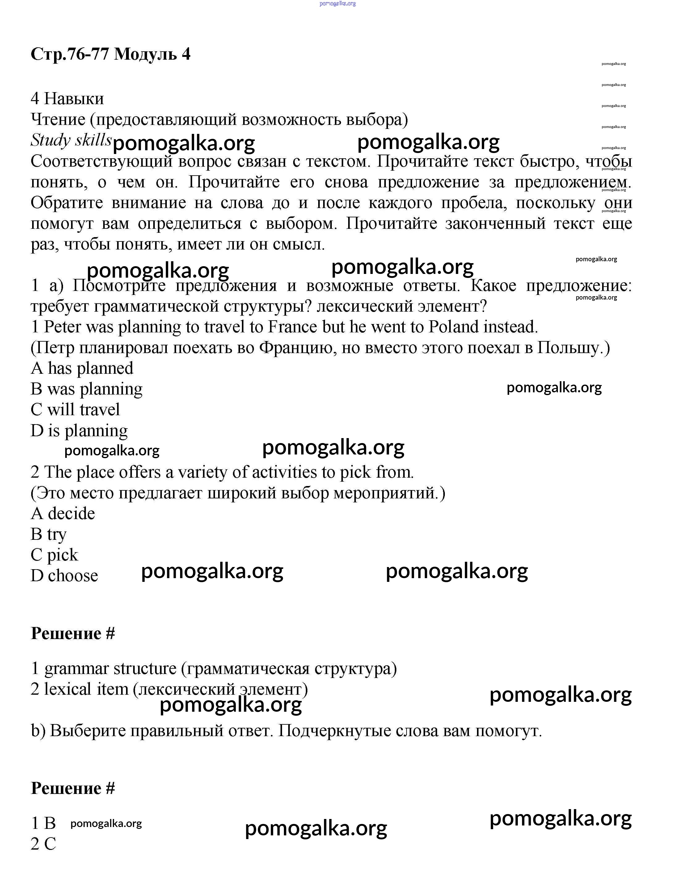 Готовые ответы - Английский язык 6 класс Starlight Баранова - module 4 76-77