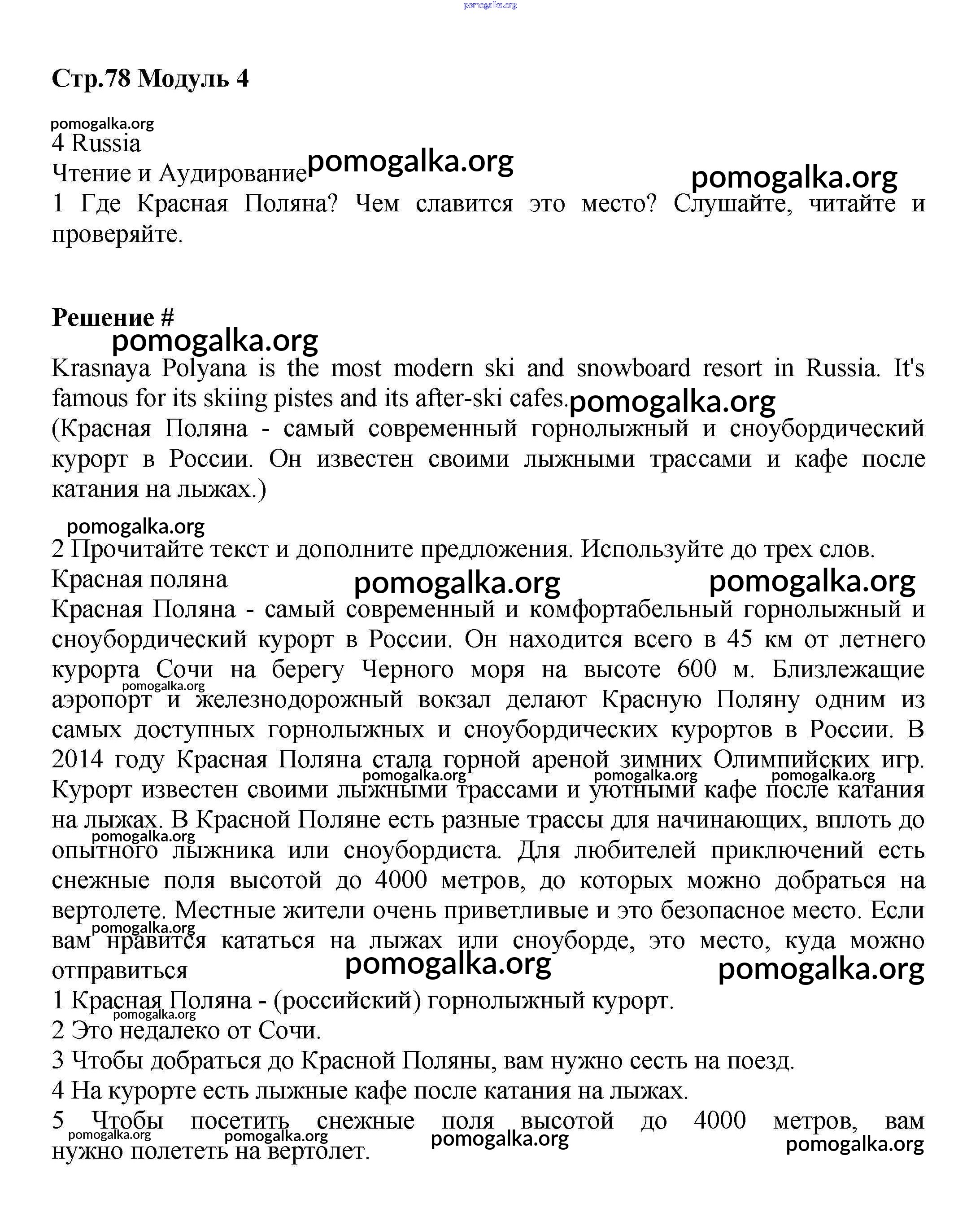 Готовые ответы - Английский язык 6 класс Starlight Баранова - module 4 78