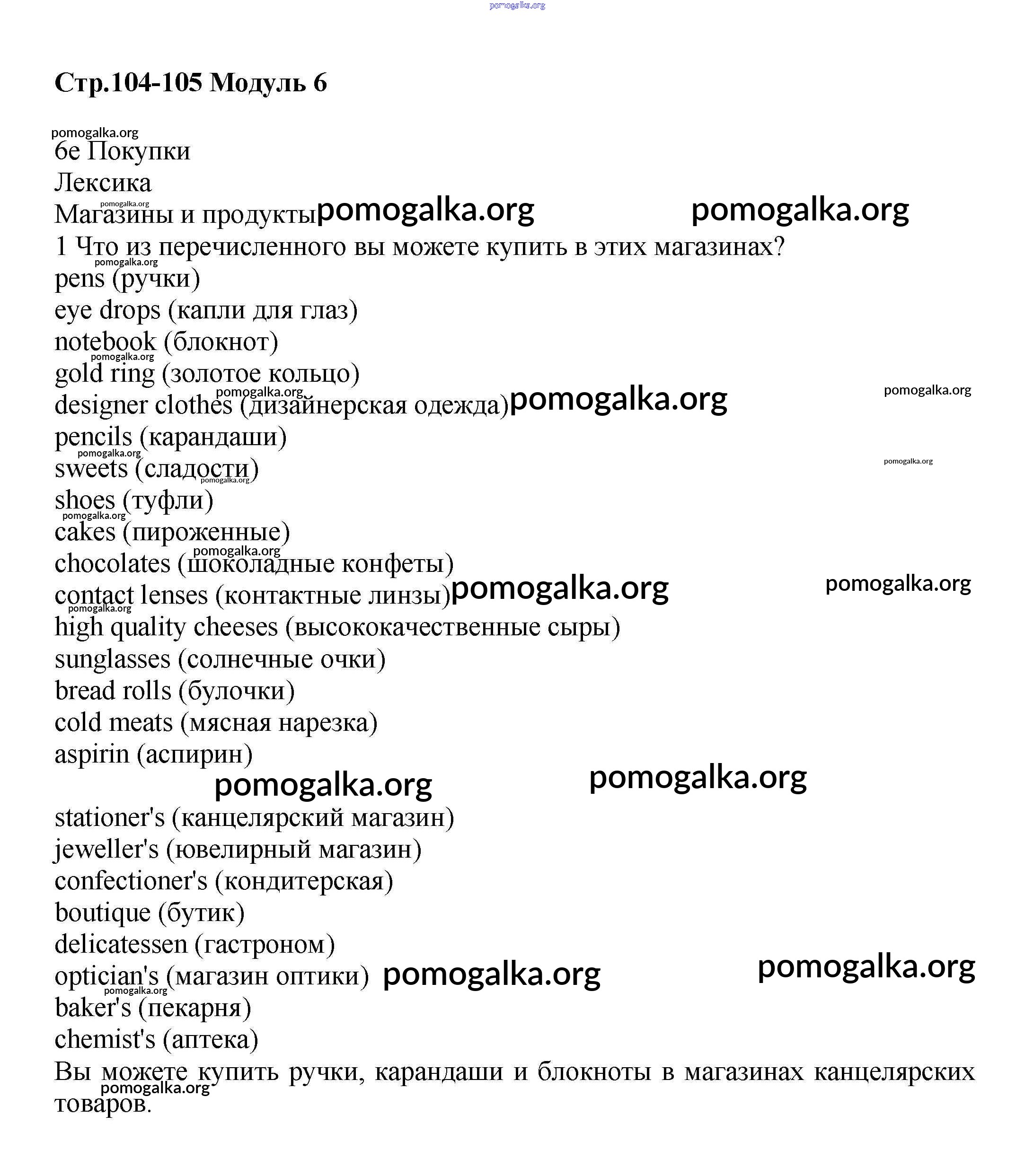 Готовые ответы - Английский язык 6 класс Starlight Баранова - module 6 104-105
