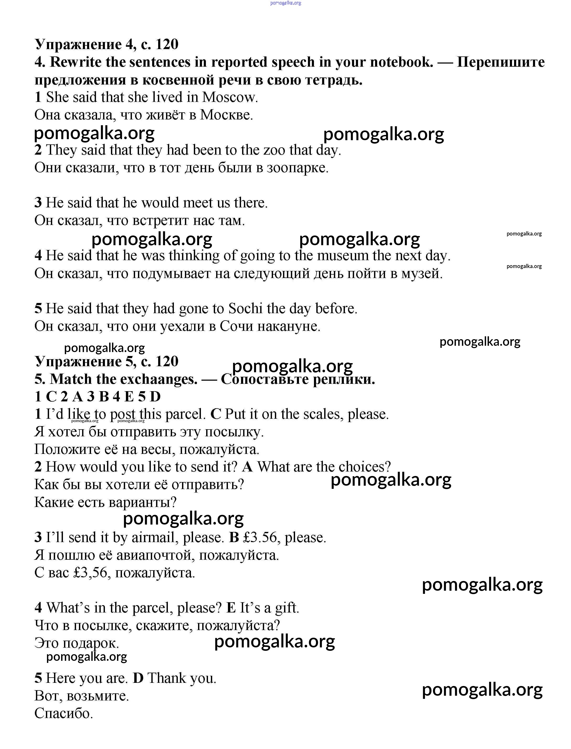 Готовые ответы - Английский язык 6 класс Starlight Баранова - revision 120