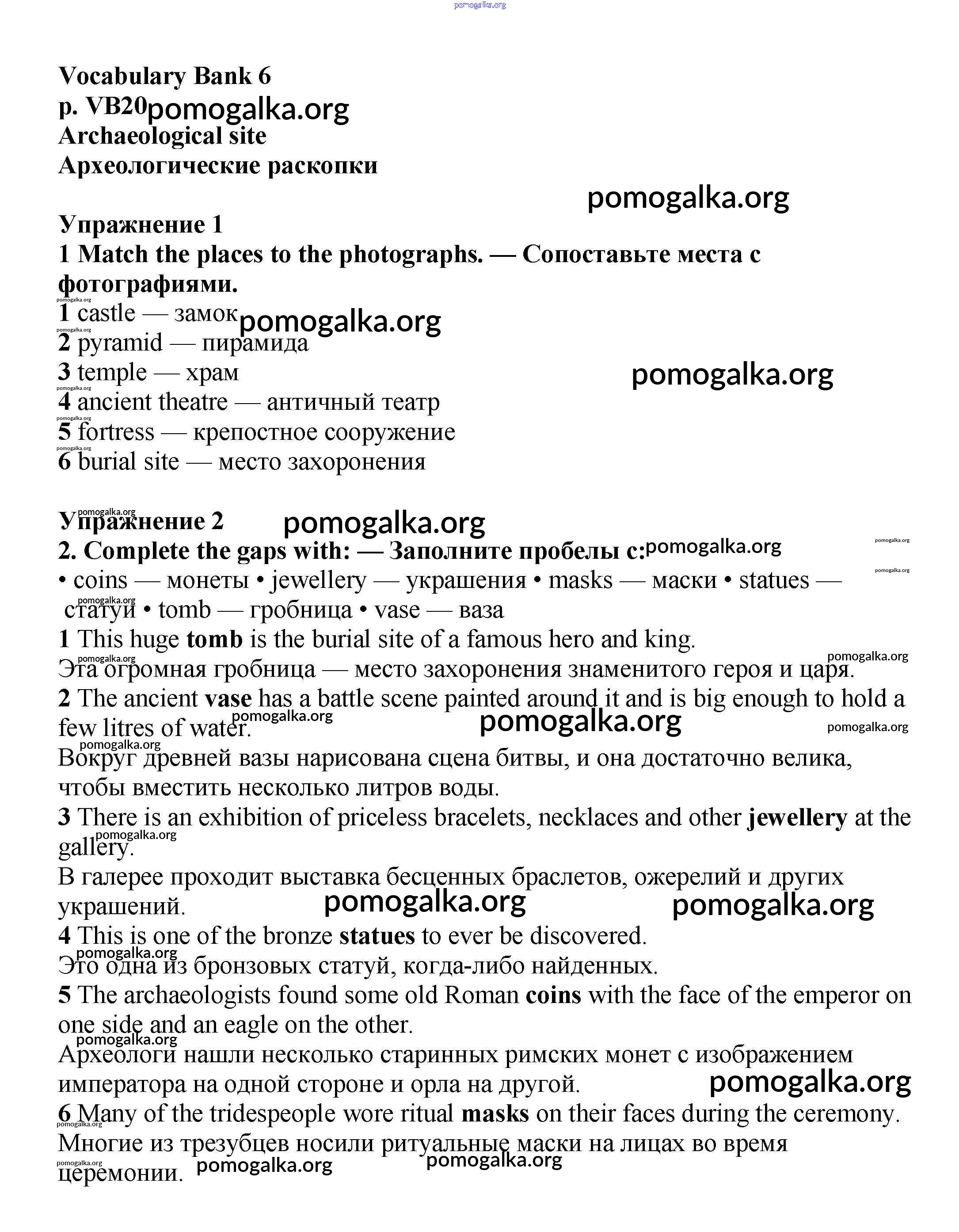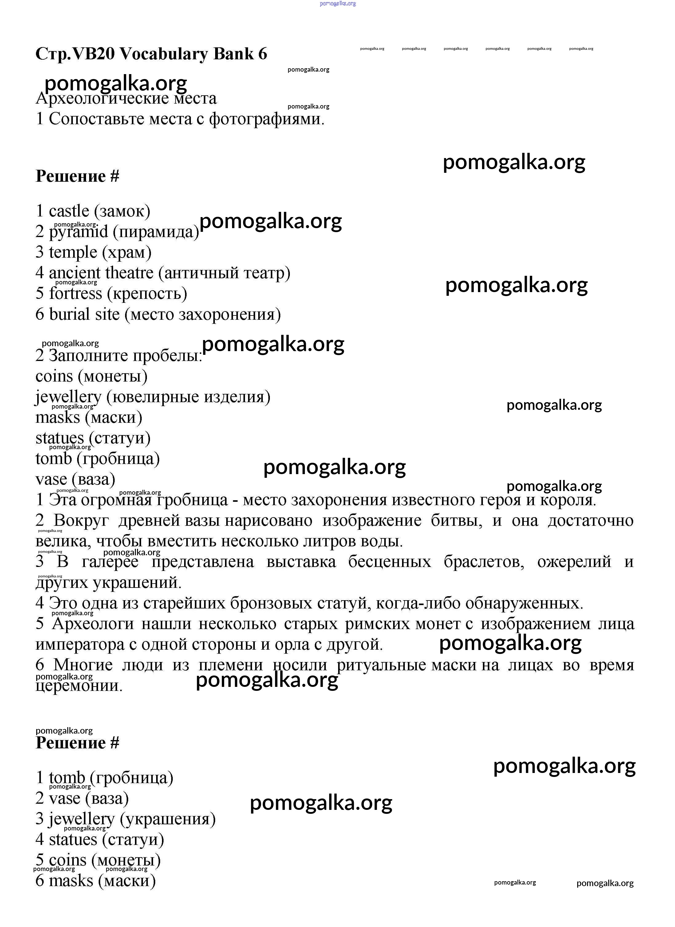 Готовые ответы - Английский язык 6 класс Starlight Баранова - vocabulary bank VB20