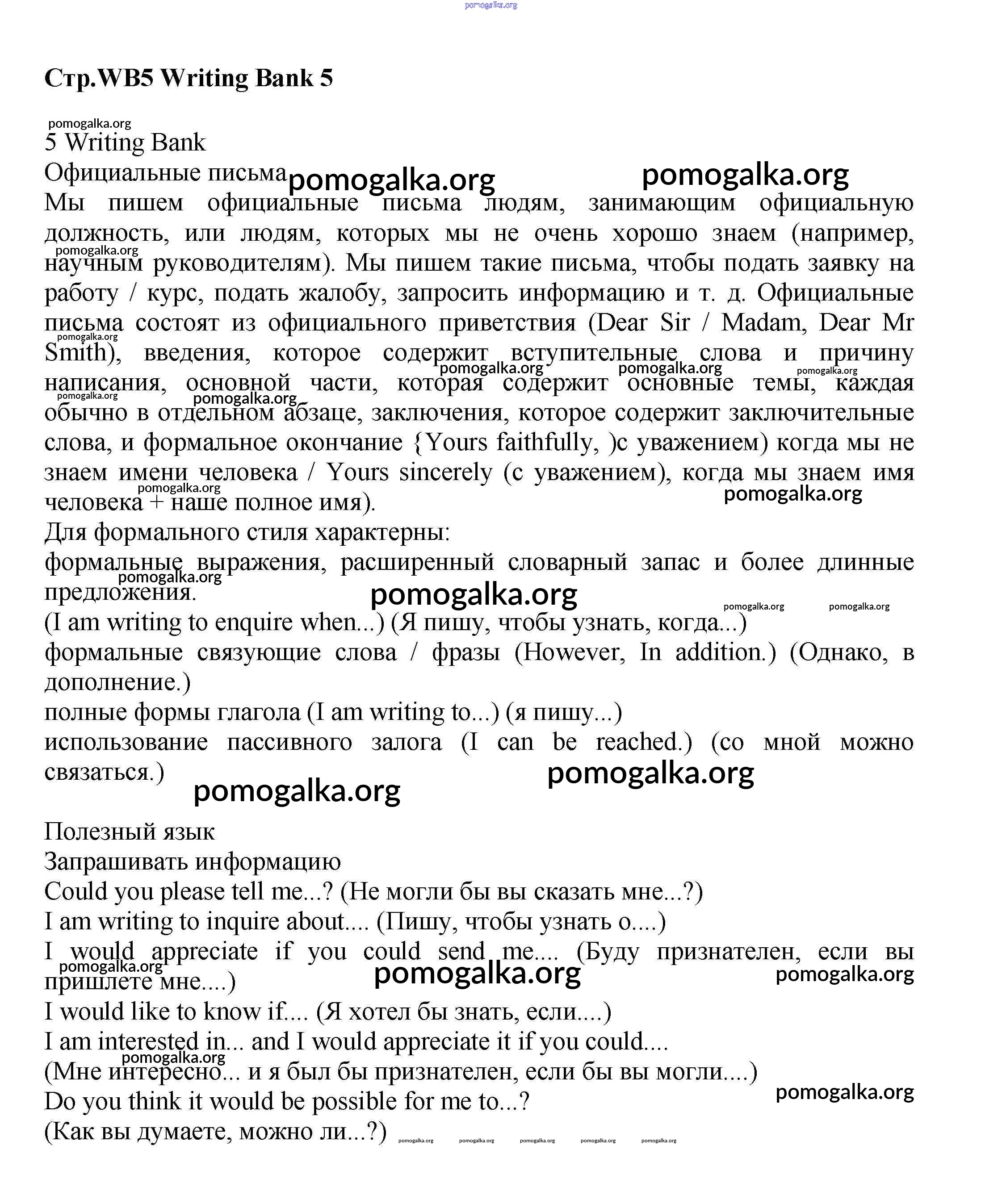 Готовые ответы - Английский язык 6 класс Starlight Баранова - writing bank WB5