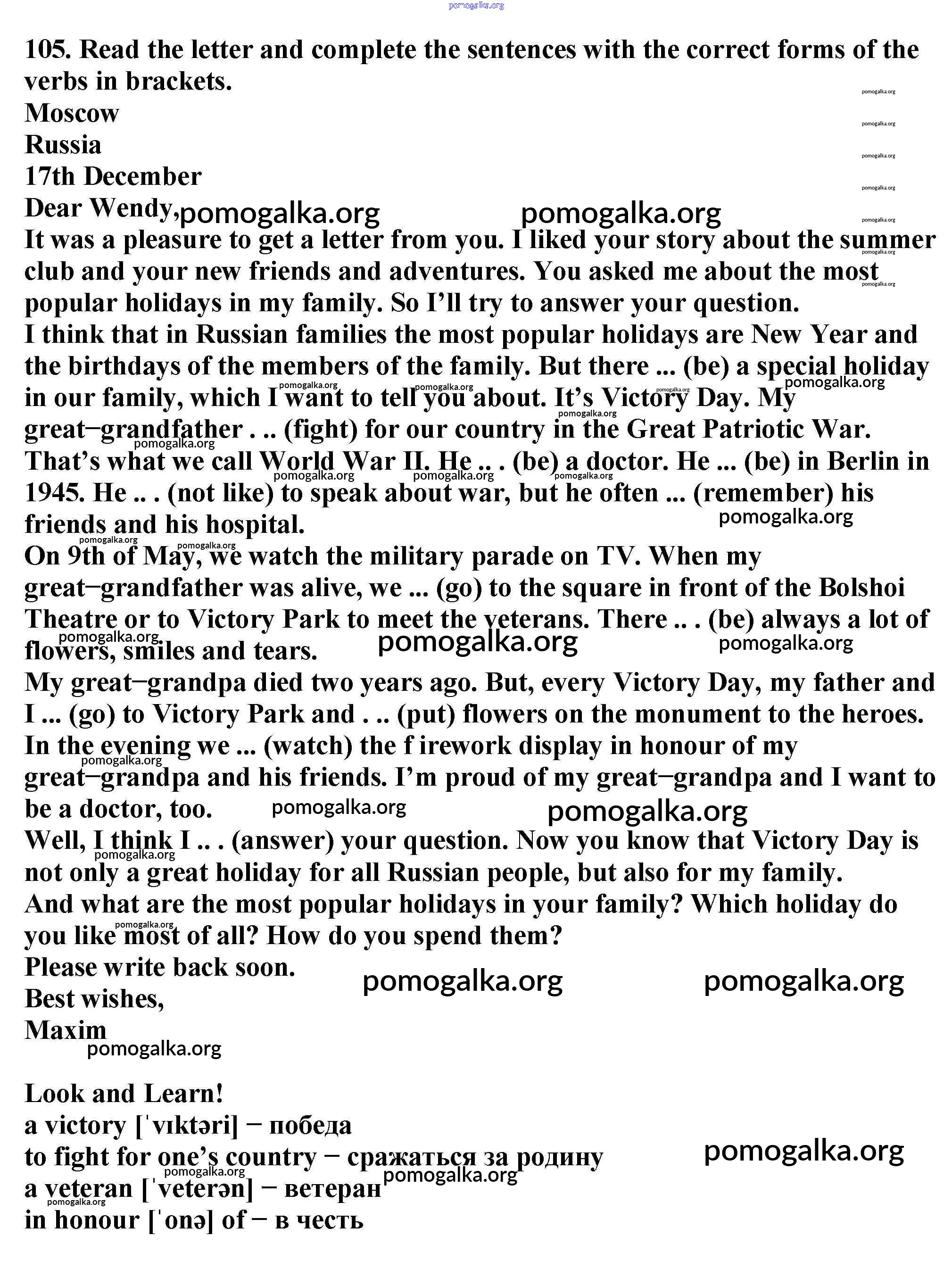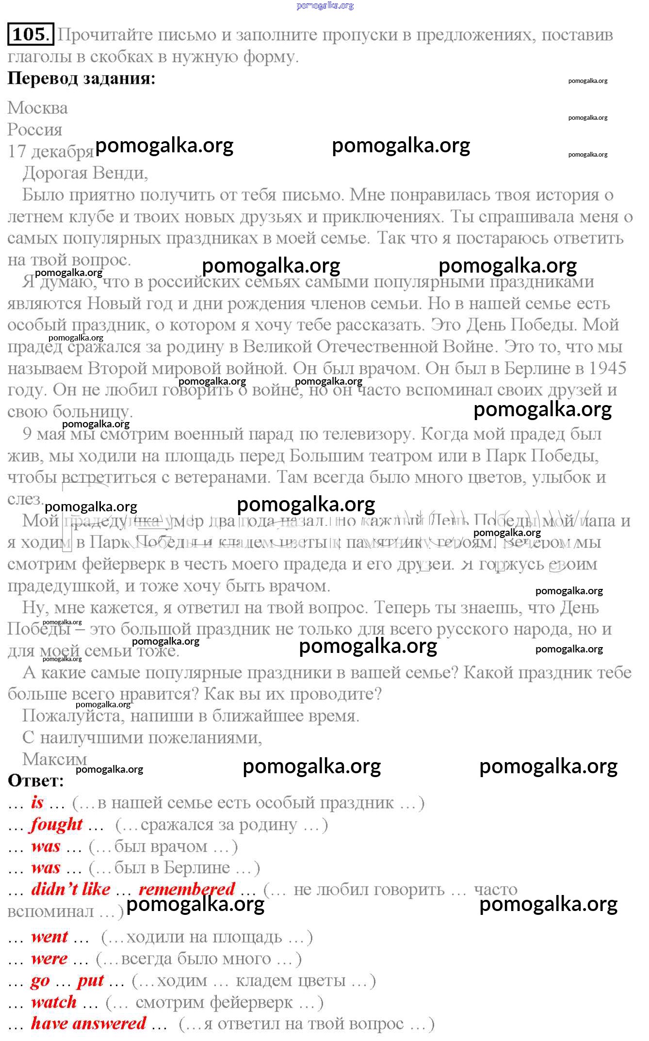 Готовые ответы - Английский язык 6 класс Enjoy English Биболетова М.З. - exercise unit 1 105