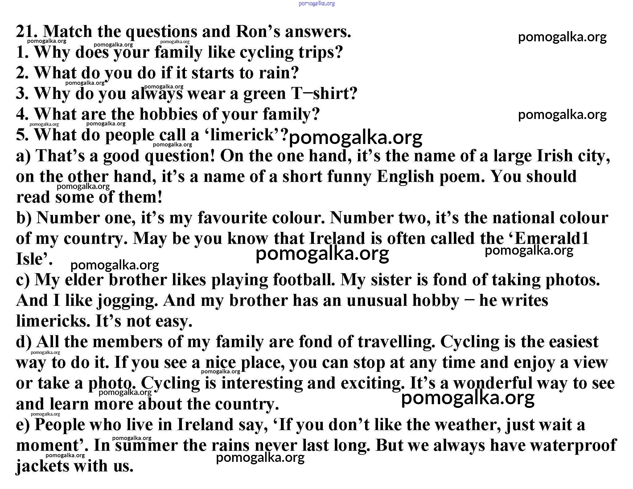 Готовые ответы - Английский язык 6 класс Enjoy English Биболетова М.З. - exercise unit 1 21