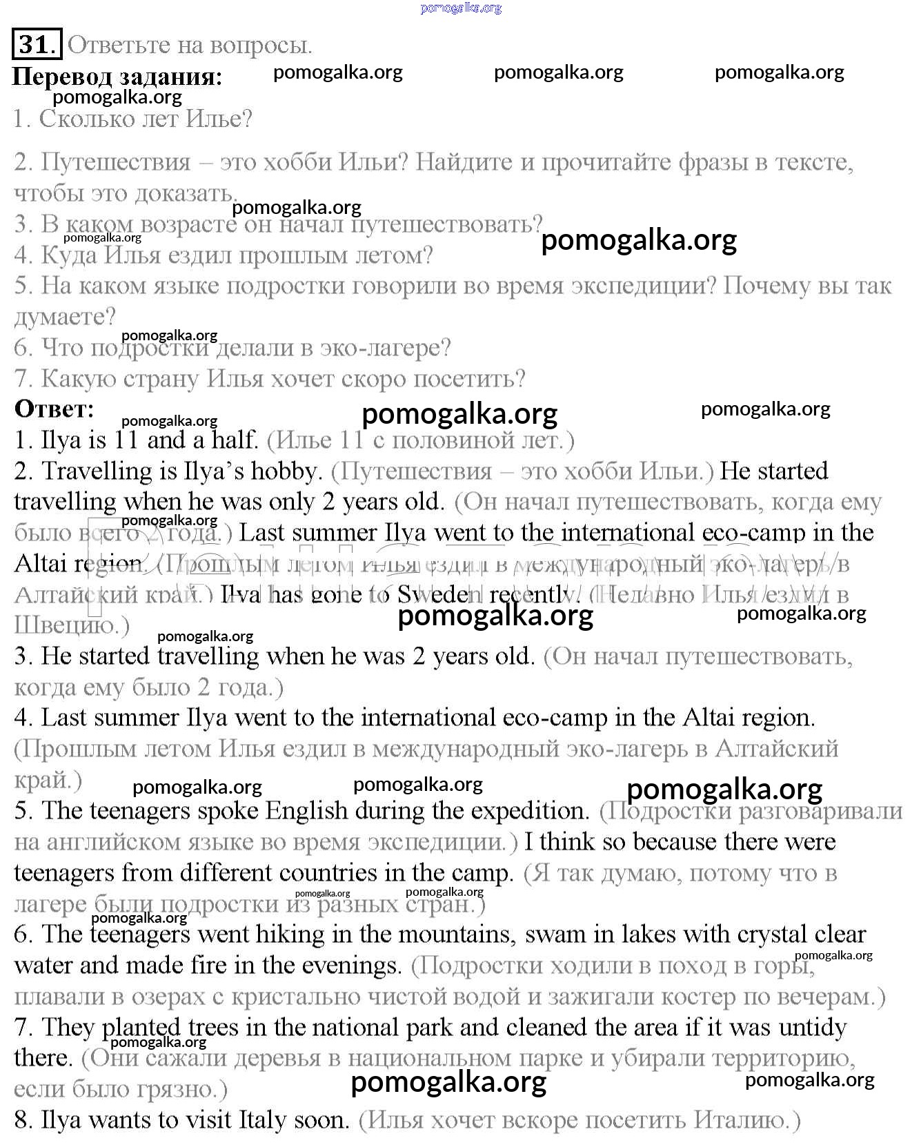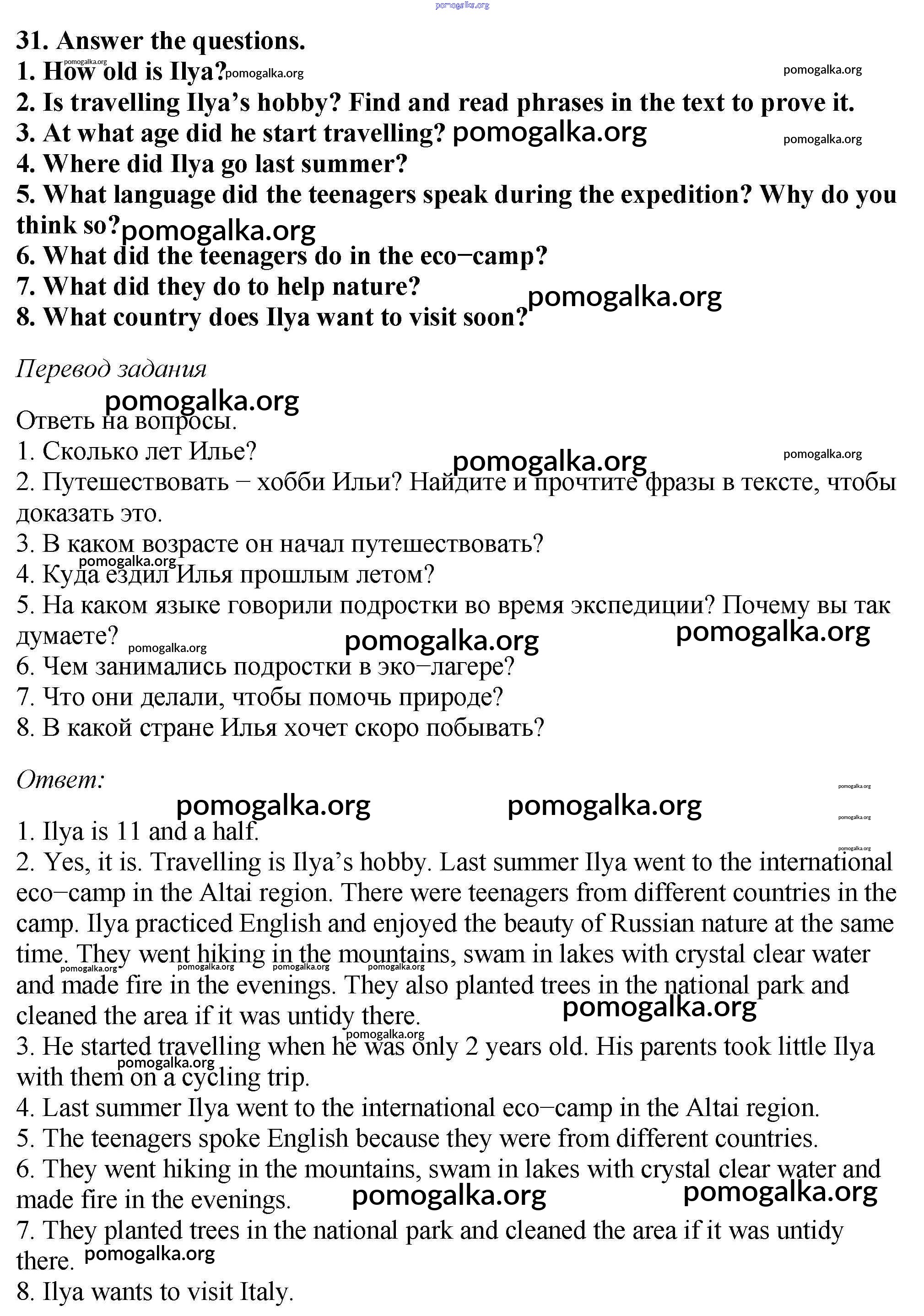 Готовые ответы - Английский язык 6 класс Enjoy English Биболетова М.З. - exercise unit 1 31