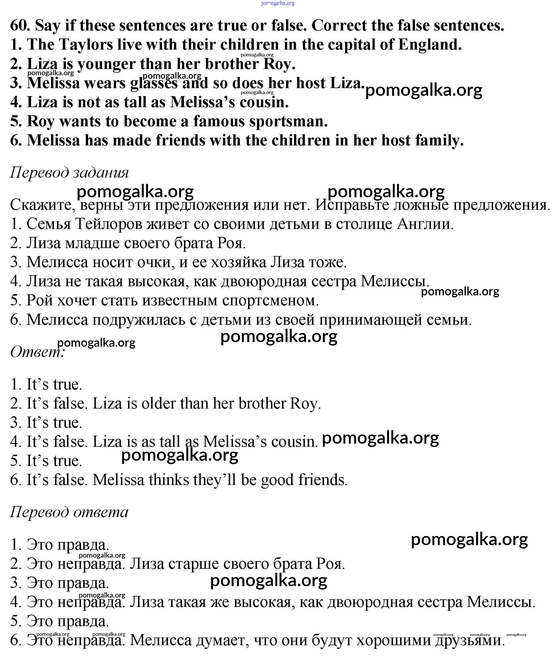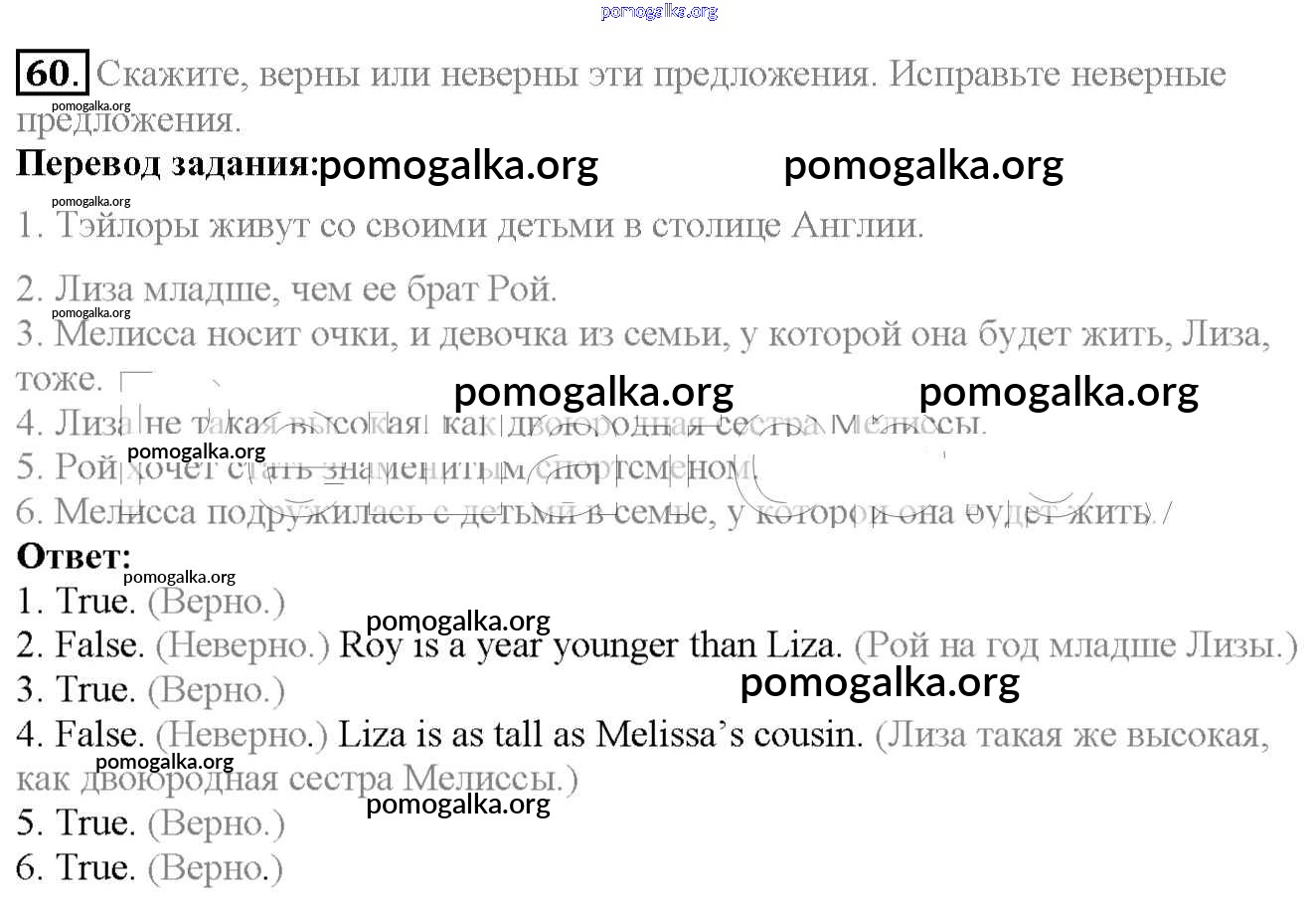 Готовые ответы - Английский язык 6 класс Enjoy English Биболетова М.З. - exercise unit 1 60