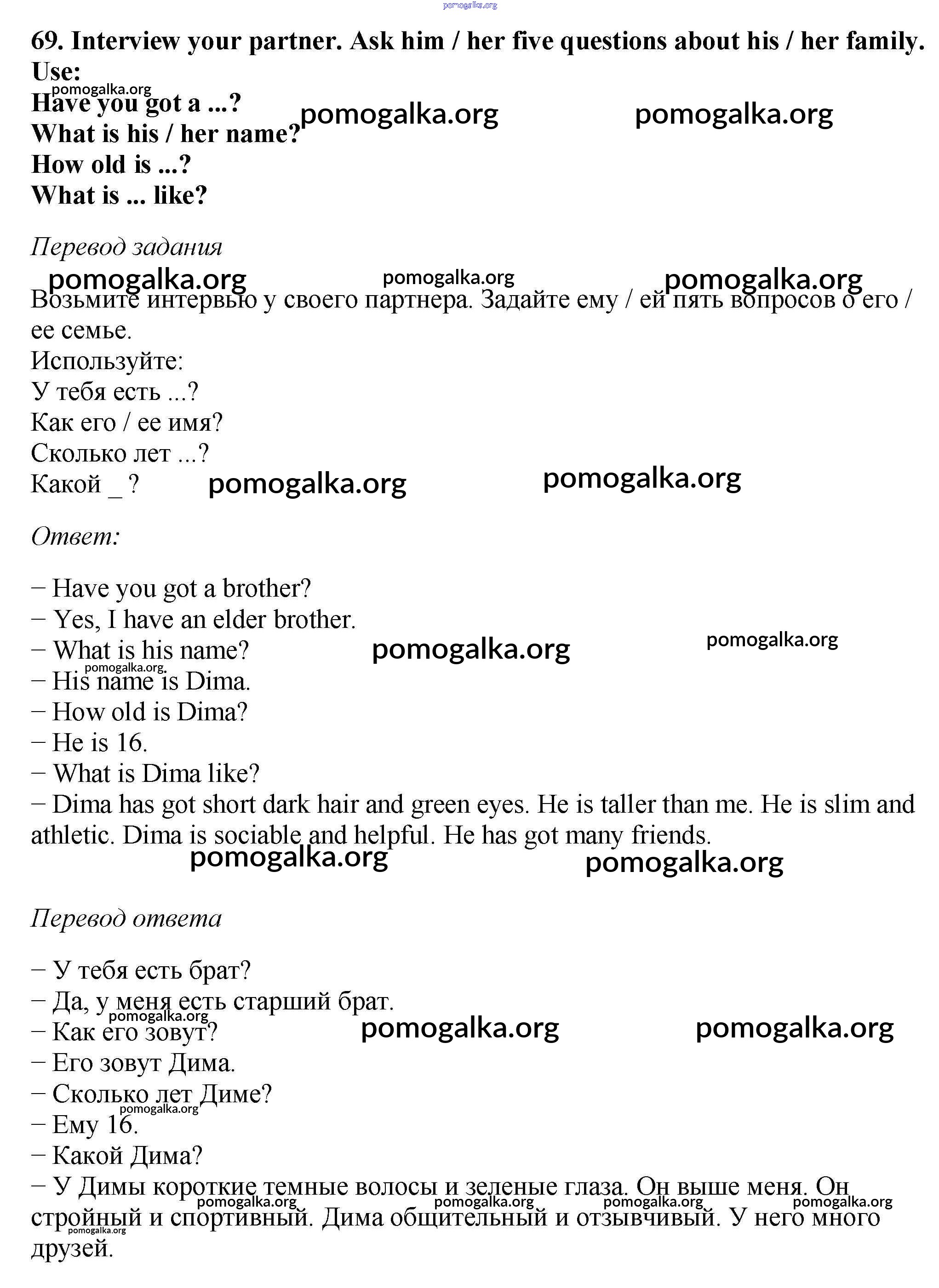 Готовые ответы - Английский язык 6 класс Enjoy English Биболетова М.З. - exercise unit 1 69